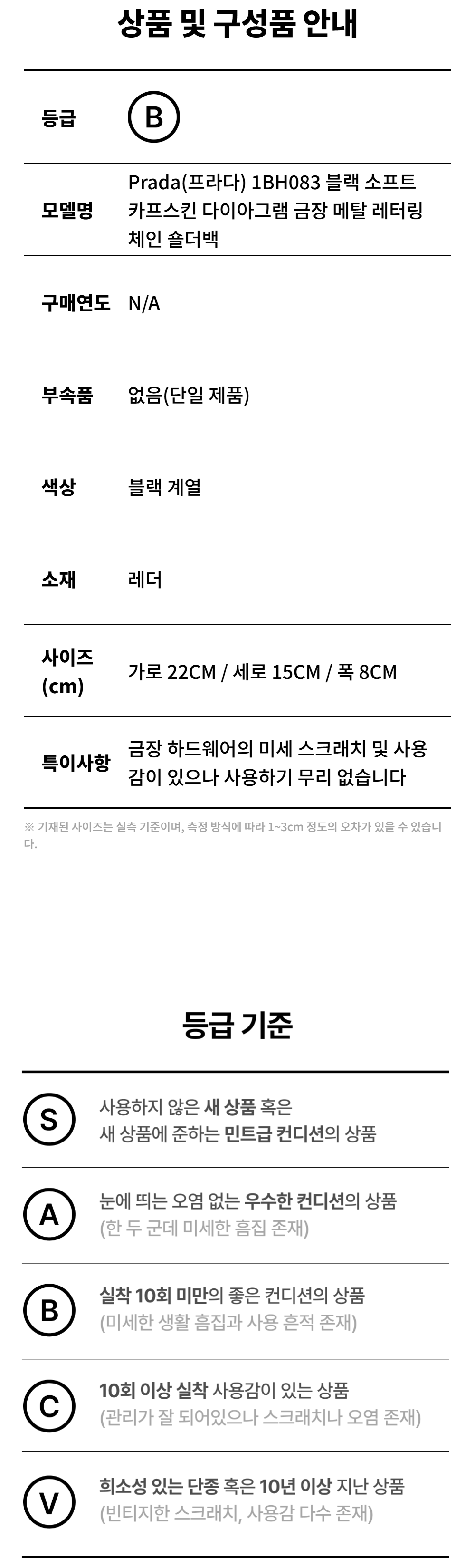 프라다 1BH083 블랙 소프트 카프스킨 다이아그램 금장 메탈 레터링 체인 숄더백