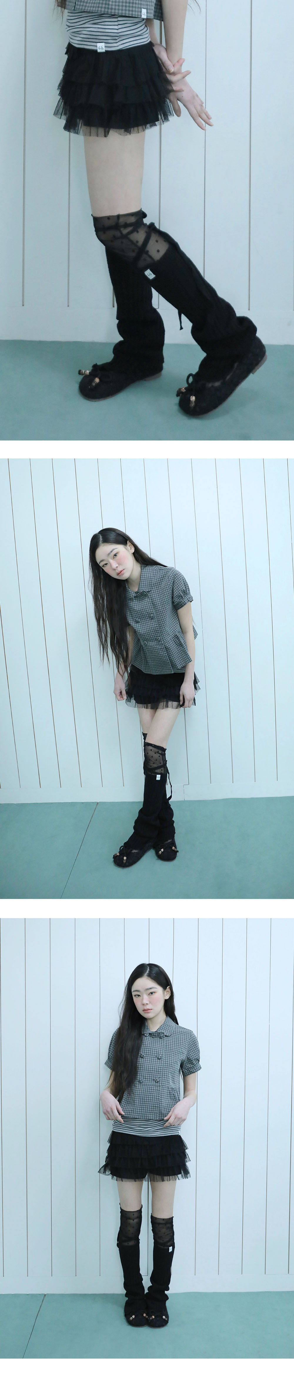 ★ SOCKS 제품은 착용 시 소재 특성 상 늘어짐이 있어 교환 및 반품이 불가하오니, 신중한 구매 부탁드립니다. [MADE IN KOREA] [Material] Nylon 76%, Spandex 24% [Date of Manufacture] 2026.02 [Model] 167cm / Top (S) Bottom (S) ** Model Fitting Size : F [Size Guide] F : Cross Section 9 Total Length 69 (cm) * 측정 방식에 따라 1-2 cm 오차가 있을 수 있습니다. * 화면에 따라 실제 색상이 차이가 날 수 있습니다. 스판감이 뛰어난 도트 패턴의 망사 니삭스로, 편안한 착용감과 포인트 스타일링이 가능합니다. * 드라이클리닝 권장 * 손세탁 시 중성세제 사용, 비틀기 금지 * 건조기 사용 금지, 그늘 자연건조 * 러플·리본·프린팅 부분 문지르지 말 것