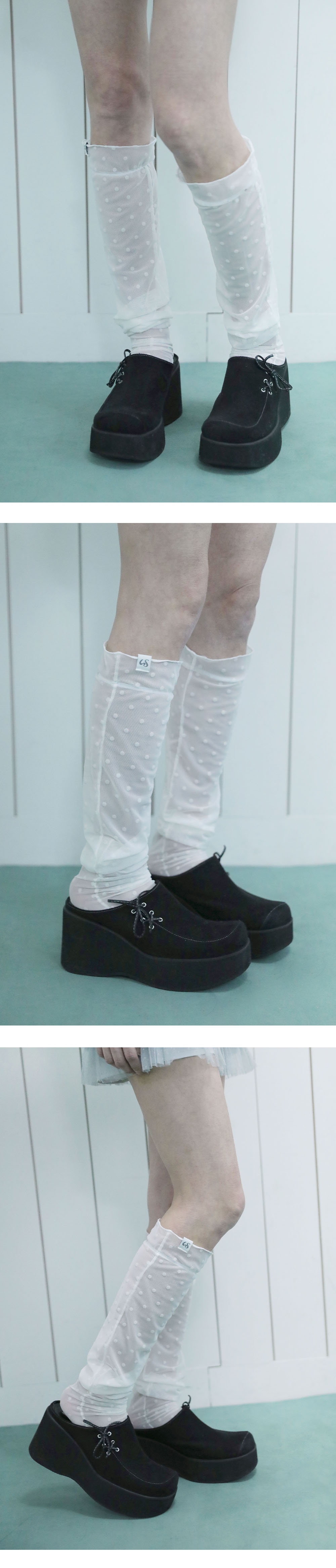 ★ SOCKS 제품은 착용 시 소재 특성 상 늘어짐이 있어 교환 및 반품이 불가하오니, 신중한 구매 부탁드립니다. [MADE IN KOREA] [Material] Nylon 76%, Spandex 24% [Date of Manufacture] 2026.02 [Model] 167cm / Top (S) Bottom (S) ** Model Fitting Size : F [Size Guide] F : Cross Section 9 Total Length 69 (cm) * 측정 방식에 따라 1-2 cm 오차가 있을 수 있습니다. * 화면에 따라 실제 색상이 차이가 날 수 있습니다. 스판감이 뛰어난 도트 패턴의 망사 니삭스로, 편안한 착용감과 포인트 스타일링이 가능합니다. * 드라이클리닝 권장 * 손세탁 시 중성세제 사용, 비틀기 금지 * 건조기 사용 금지, 그늘 자연건조 * 러플·리본·프린팅 부분 문지르지 말 것