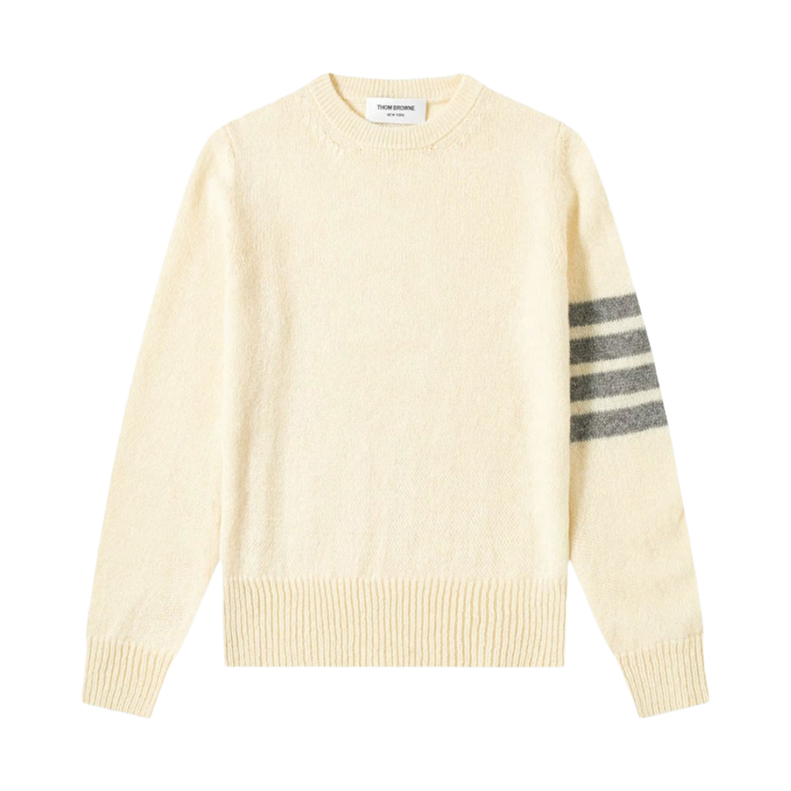Thom Browne Shetland 4-Bar Classic Crewneck Pullover Knit White