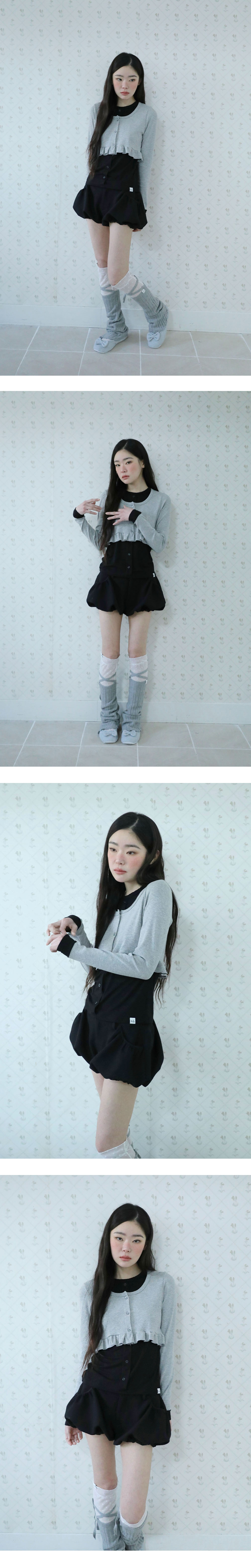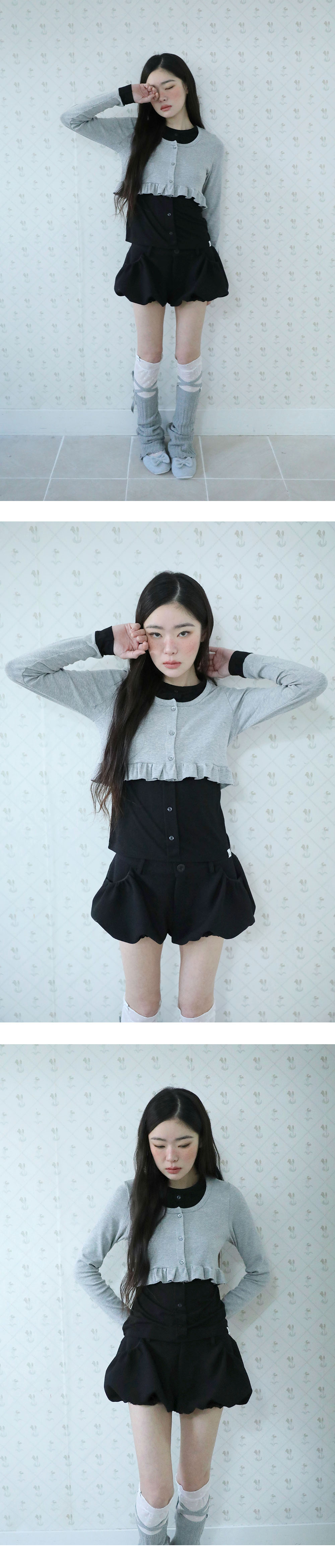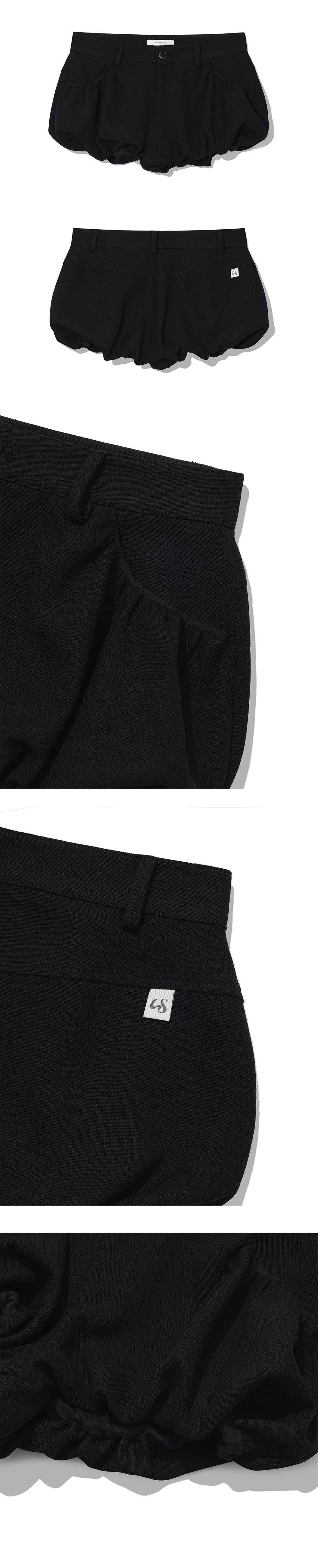 [MADE IN KOREA] [Material] Polyester 67%, Rayon 30%, Spandex 3% [Date of Manufacture] 2026.02 [Model] 167cm / Top (S) Bottom (S) ** Model Fitting Size : S [Size Guide] S : Waist 38 Hip 53 Rise 26 Thigh 25 Total Length 28 (cm) M : Waist 40 Hip 55 Rise 28 Thigh 27 Total Length 29 (cm) * 측정 방식에 따라 1-2 cm 오차가 있을 수 있습니다. * 화면에 따라 실제 색상이 차이가 날 수 있습니다. 펌킨 핏으로 볼륨감 있게 떨어지는 블룸 실루엣의 숏팬츠입니다. * 드라이클리닝 권장 * 손세탁 시 중성세제 사용, 비틀기 금지 * 건조기 사용 금지, 그늘 자연건조 * 러플·리본·프린팅 부분 문지르지 말 것