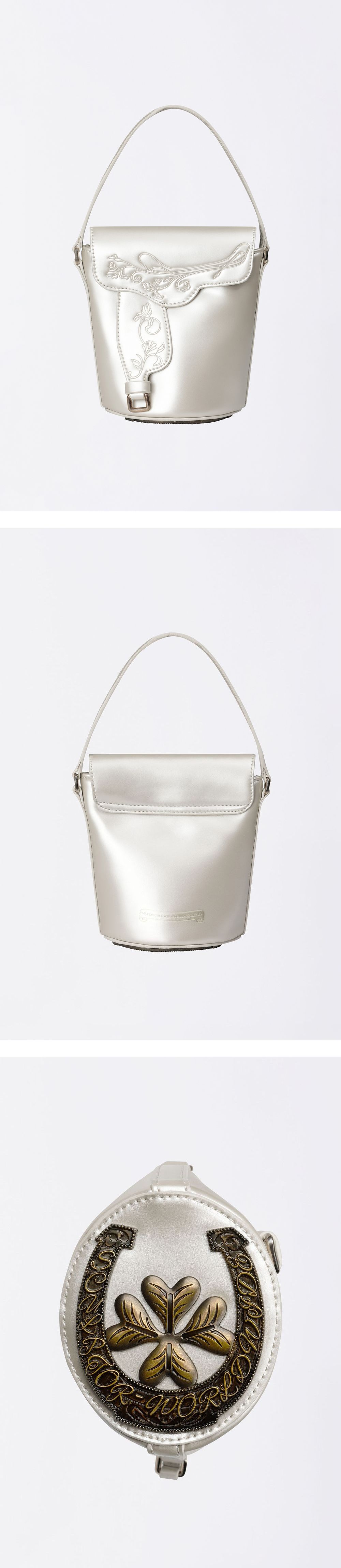 [INFORMATION] OUTSHELL : POLYURETHANE 55% POLYESTER 45% LINING : COTTON 100% MANUFACTURE : SCULPTOR / CHINA [SIZE GUIDE] F : Width 14.5 / Length 14 / Depth 14 / Strap 28 *There may be 1-2cm difference depending on the measurement location and individual. (Unit : cm) Female Model's Height 171 / Bust 31 / Waist 24 / Hip 36 *Female Model Fitting Size : F [LAUNDRY TIP] Dry-cleaning as well as washing should not be conducted as it could cause damages such as shrinkage or distortion of the products. If necessary, gently wipe off with a damp cloth. Refer to the laundry label for any further details. There may be a loss of small components of the products (such as buttons, beads, sequins, hotfix crystals, etc.) during use or washing. Any damage or loss resulting from a lack of caution does not qualify for any compensations.