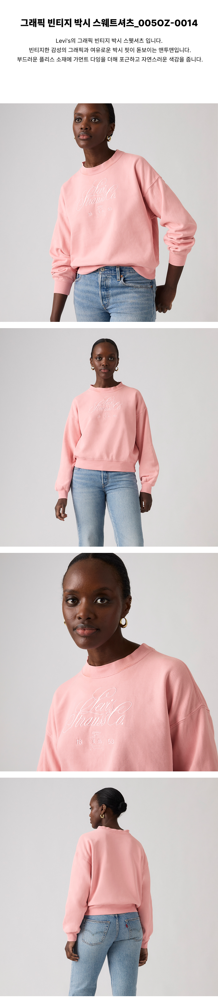 리바이스 그래픽 빈티지 박시 스웨트셔츠 핑크