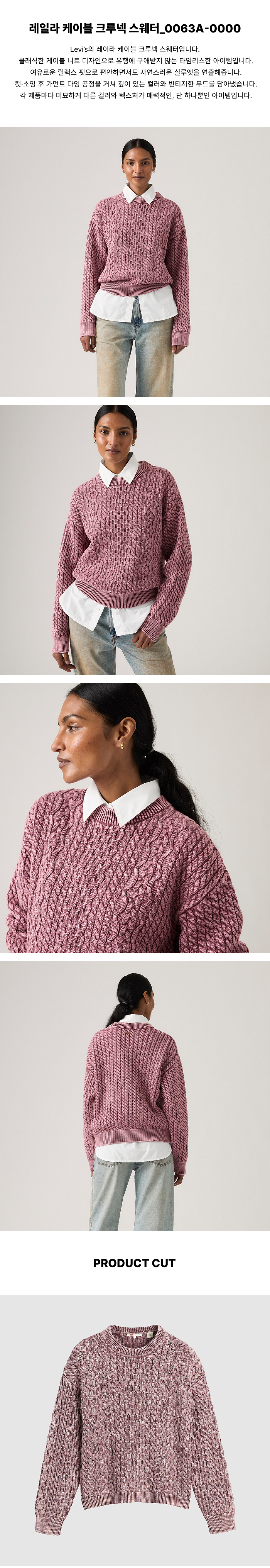 리바이스 레일라 케이블 크루넥 스웨터 핑크