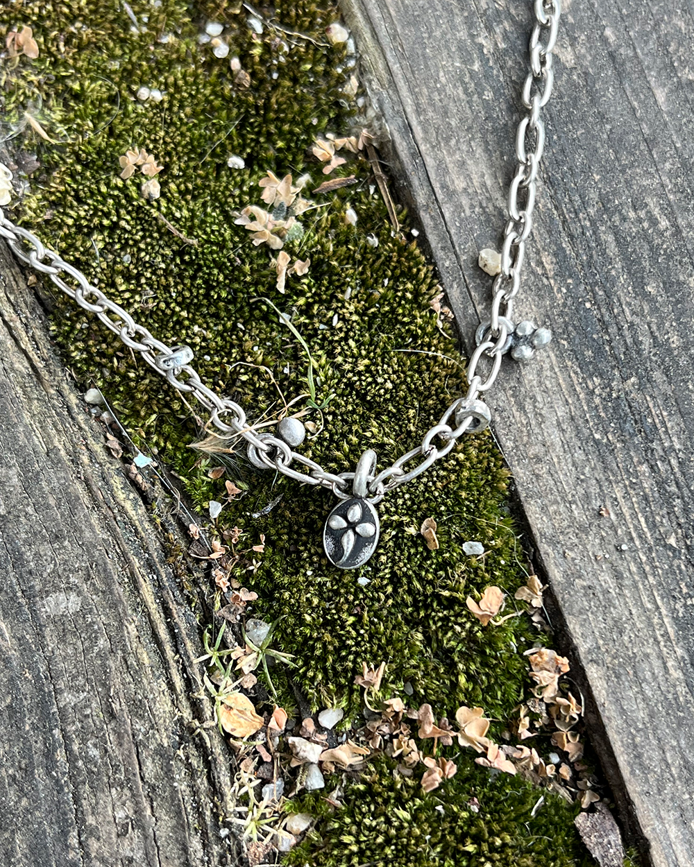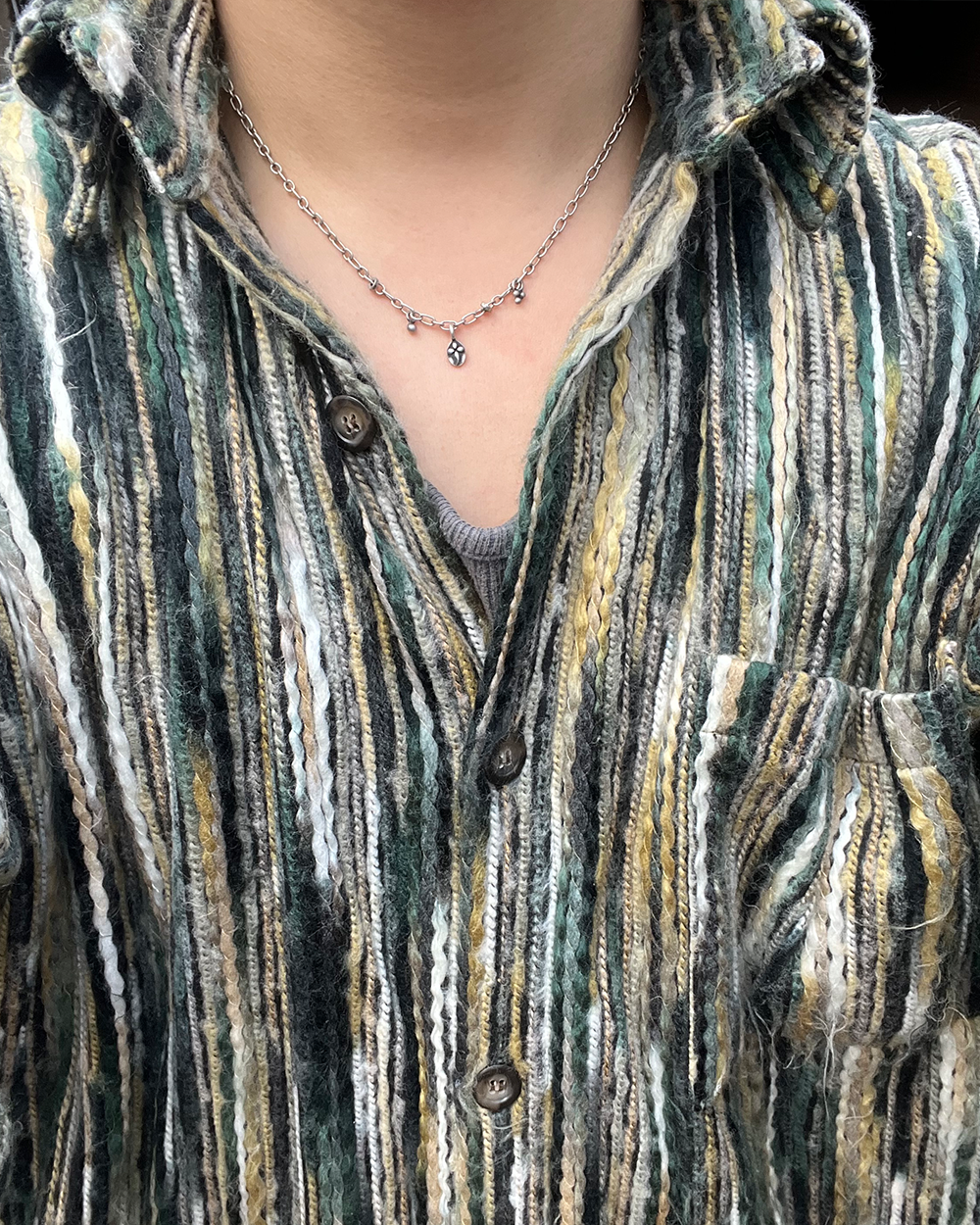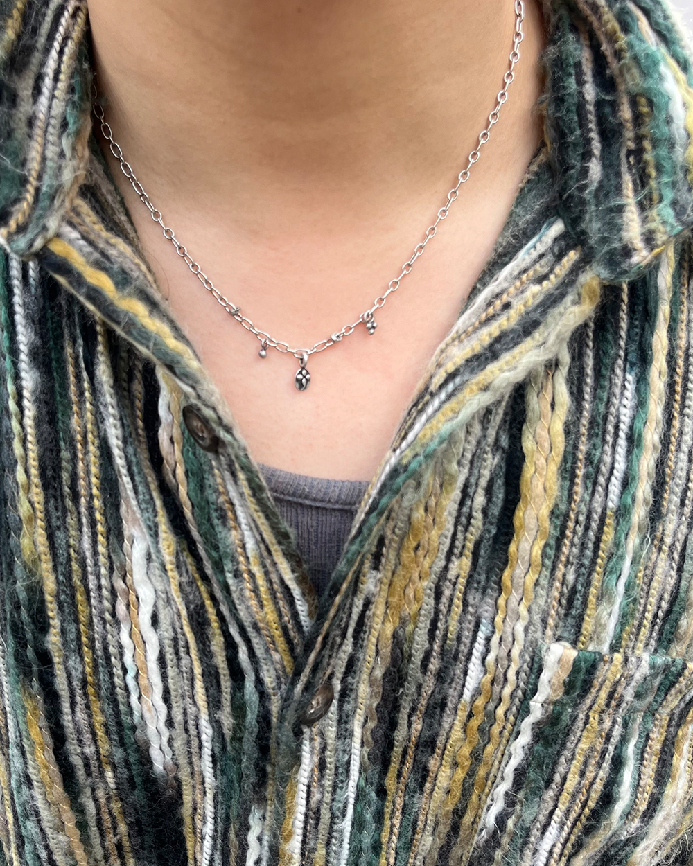 길이 : S (40cm) - For Women M (46cm) - For Mes L (50cm) - For Long Vibes 시그니처 심볼과 비슷한 느낌의 파츠들을 통해 러프하면서도 디테일한 포인트를 살린 목걸이입니다. Noticevasam-Made