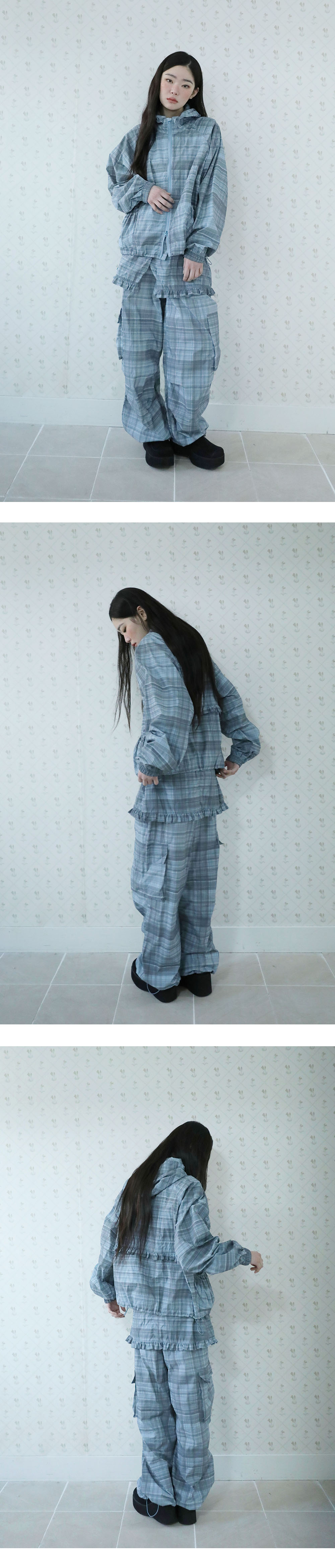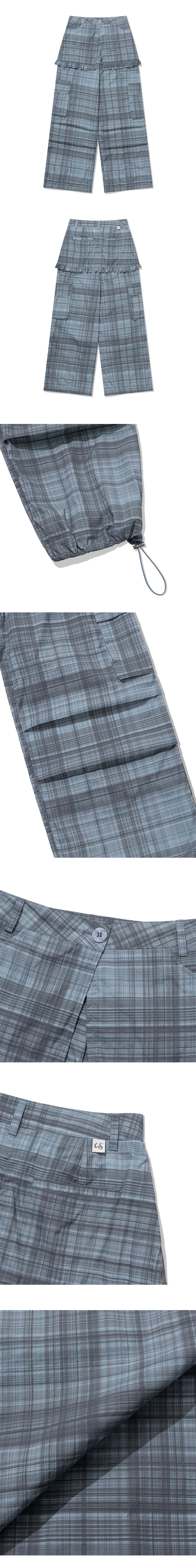 어글리쉐도우 러플 체크 스커트 카고 팬츠 블루