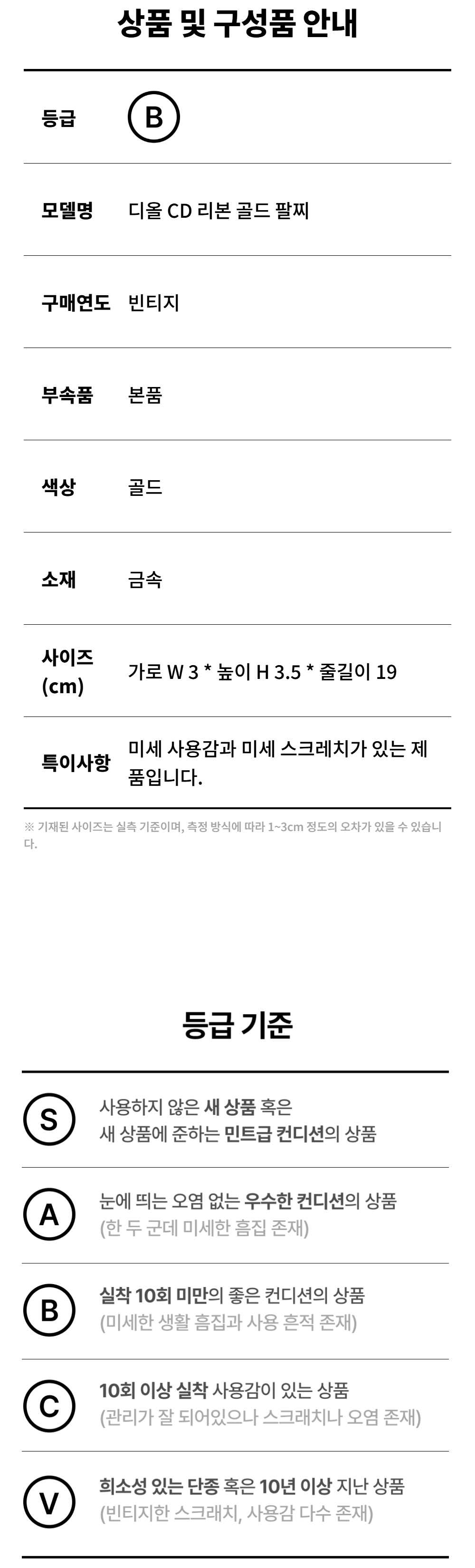 디올 CD 리본 골드 팔찌 A-B49506