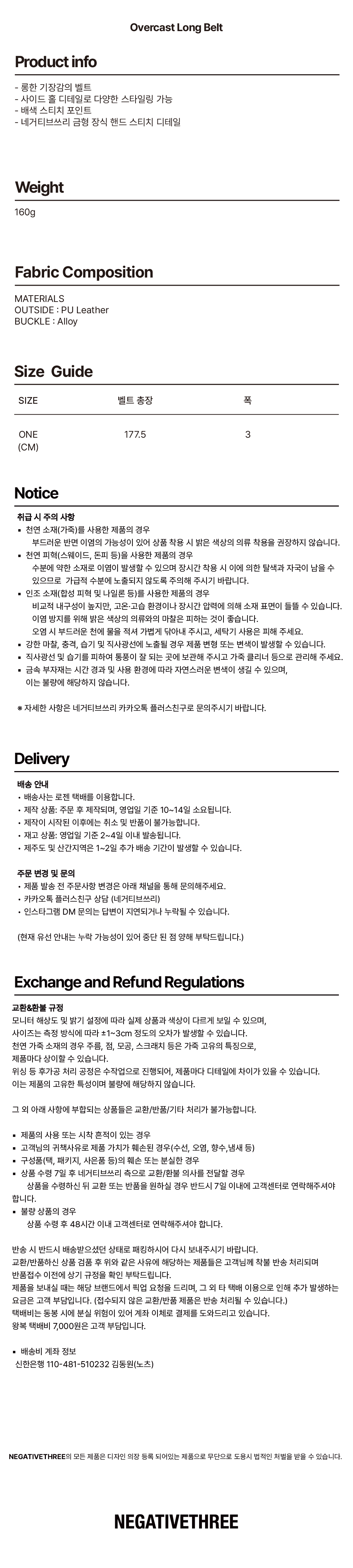 네거티브쓰리 오버캐스트 롱 벨트 블랙