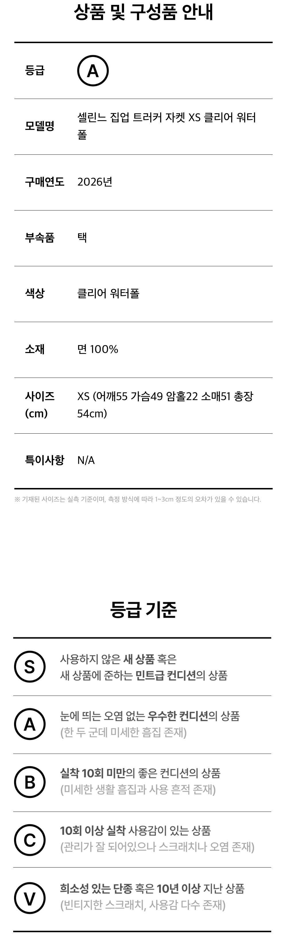 셀린느 집업 트러커 자켓 XS 클리어 워터폴(6ET0420)