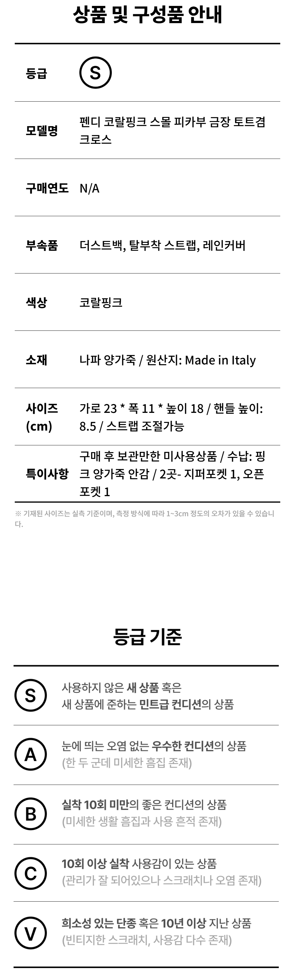 펜디 코랄핑크 스몰 피카부 금장 토트겸 크로스