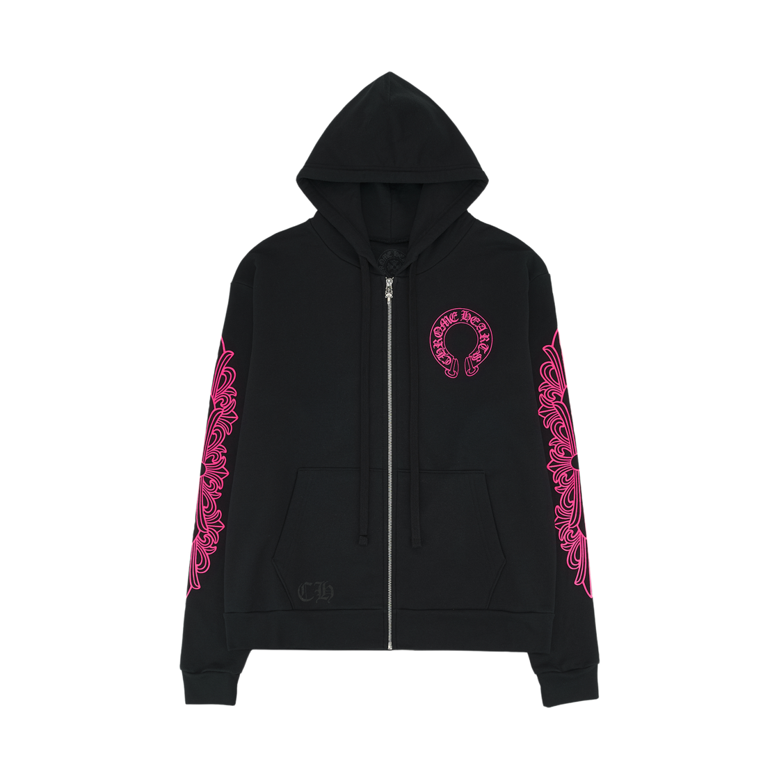 Chrome Hearts Horseshoe Floral Fleece Zip-Up Hoodie Black Pink