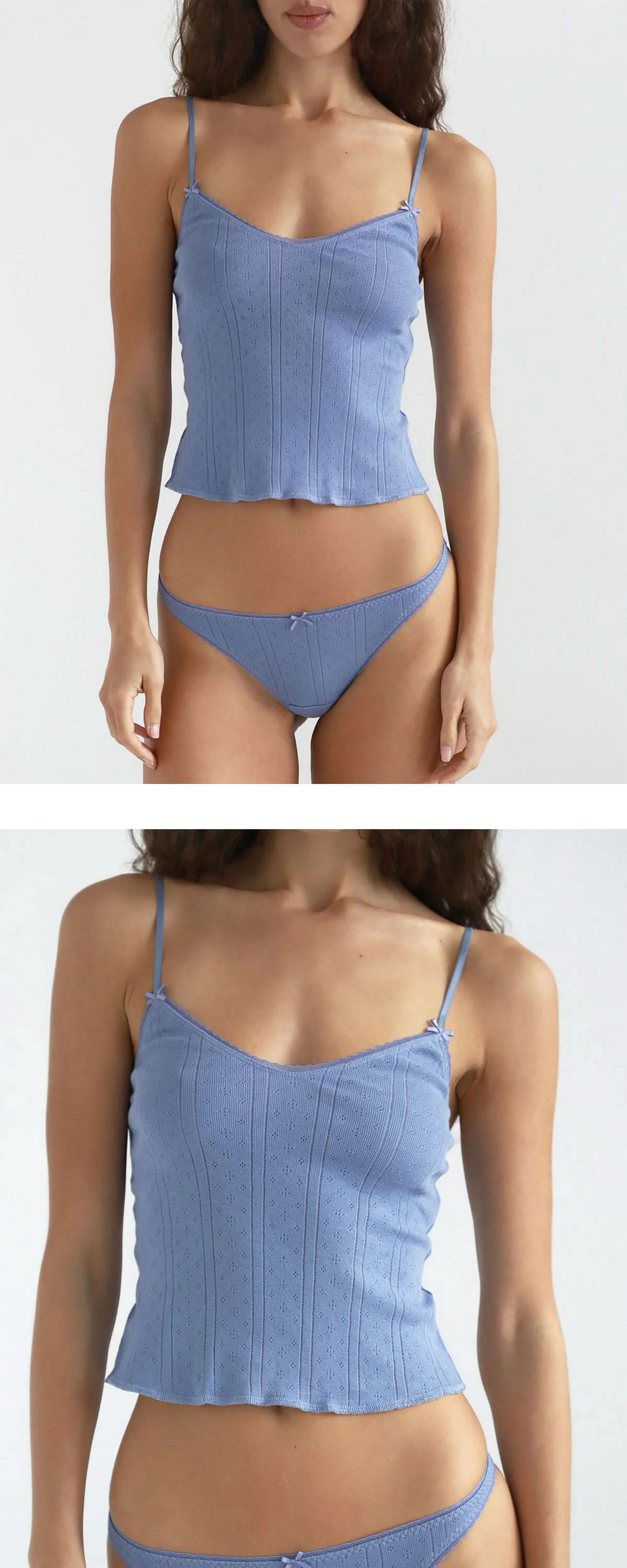 쿠쿠 인티메이트 우먼 더 롱 캐미 프렌치 블루입니다. - 크롭 기장이 부담스러운 분들을 위한 풀 렝스 캐미솔 - 배꼽 바로 아래까지 내려오는 안정적인 기장감과 커버리지 - 가슴 굴곡이 있거나 긴 기장을 선호하는 체형에 최적화된 설계 - 부드러운 오가닉 소재로 단독 착용 또는 이너로 완벽 활용