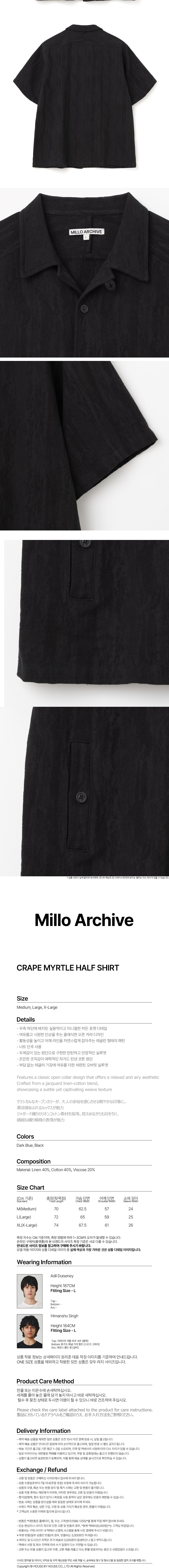 밀로 아카이브 크레이프 머틀 하프 셔츠 블랙