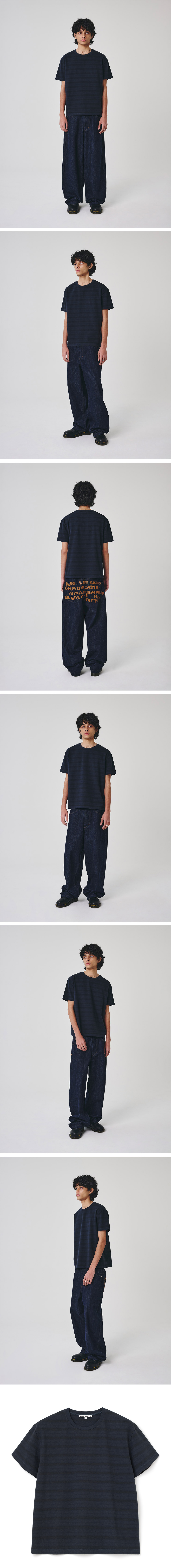Millo Archive Para Dyeing Stripe T-Shirt Navy