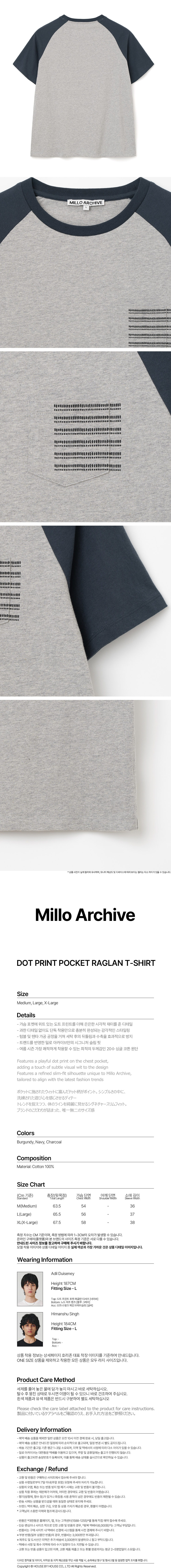 밀로 아카이브 도트 프린트 포켓 래글런 티셔츠 네이비