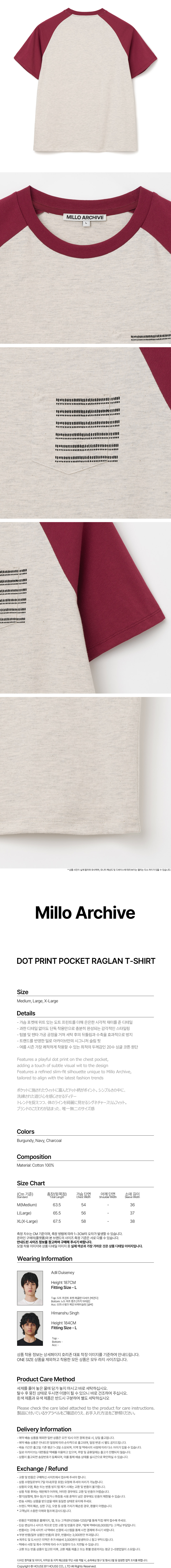 밀로 아카이브 도트 프린트 포켓 래글런 티셔츠 버건디