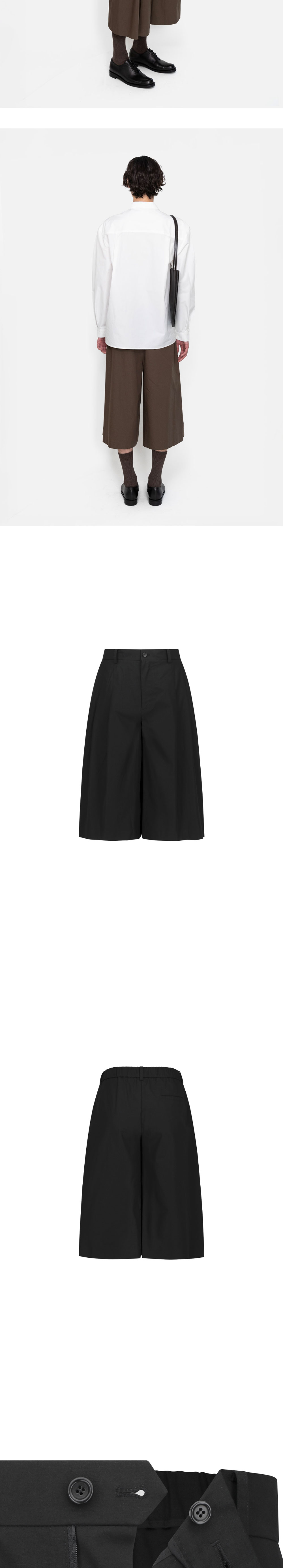아모멘토 와이드 버뮤다 팬츠 블랙입니다. - 와이드한 실루엣 - 밀도 높은 코튼 혼방 소재로 자연스럽고 매트한 질감 - 허리 뒷 밴딩 - 전면 턱 디테일로 와이드파게 퍼지는 실루엣 연출 - 옆선 절개 없이 다트로 완성한 미니멀한 디자인 - 밑단 블라인드 스티치 마감 *모델 컷은 제품의 실제 컬러와 다른 점 참고 부탁드립니다. *모델 스펙: 185cm M Size 착용