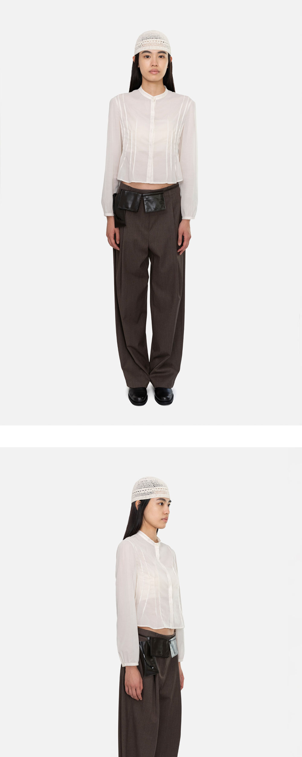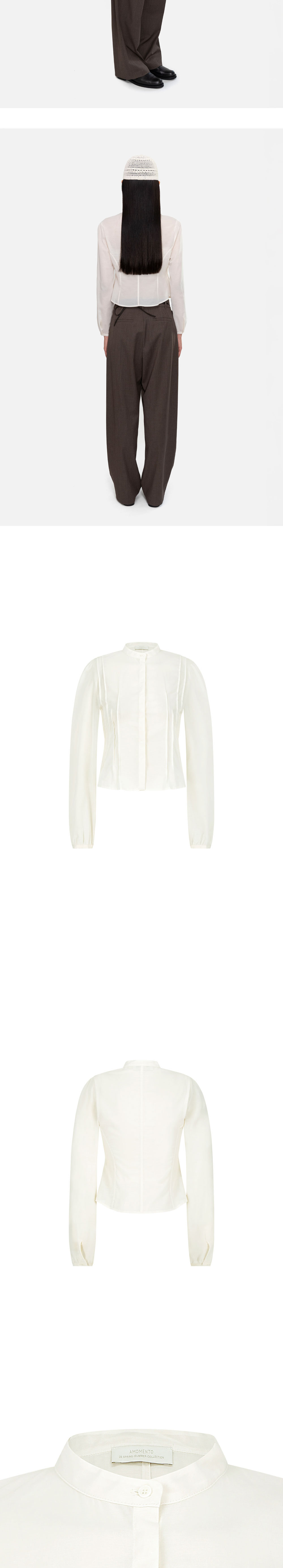 아모멘토 우먼 핀턱 슬림 셔츠 아이보리입니다. - 은은한 비침의 시어한 원단 - 불규칙한 핀턱 디테일 - 소매 셔링으로 볼륨감 있는 실루엣 - 크롭 기장과 허리를 잡아주는 핏으로 깔끔한 실루엣 연출 *모델 스펙: 177cm 0 Size 착용