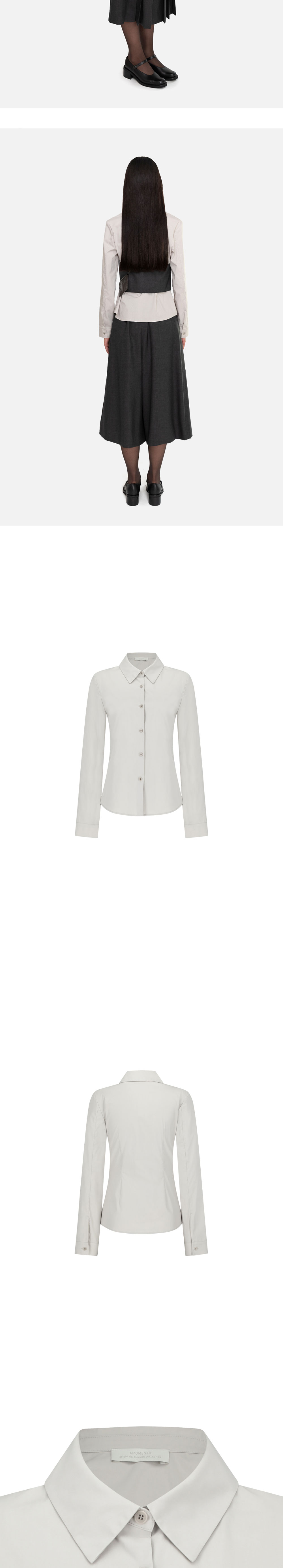 아모멘토 우먼 슬림 셔츠 베이지입니다. - 탄탄한 소재감과 다양한 컬러감 - 스티치를 최소화한 미니멀한 디자인 - 다트 디테일을 통한 슬림한 실루엣 표현 - 단독 또는 레이어링 아이템으로 활용 가능 *모델 스펙: 177cm 0 Size 착용