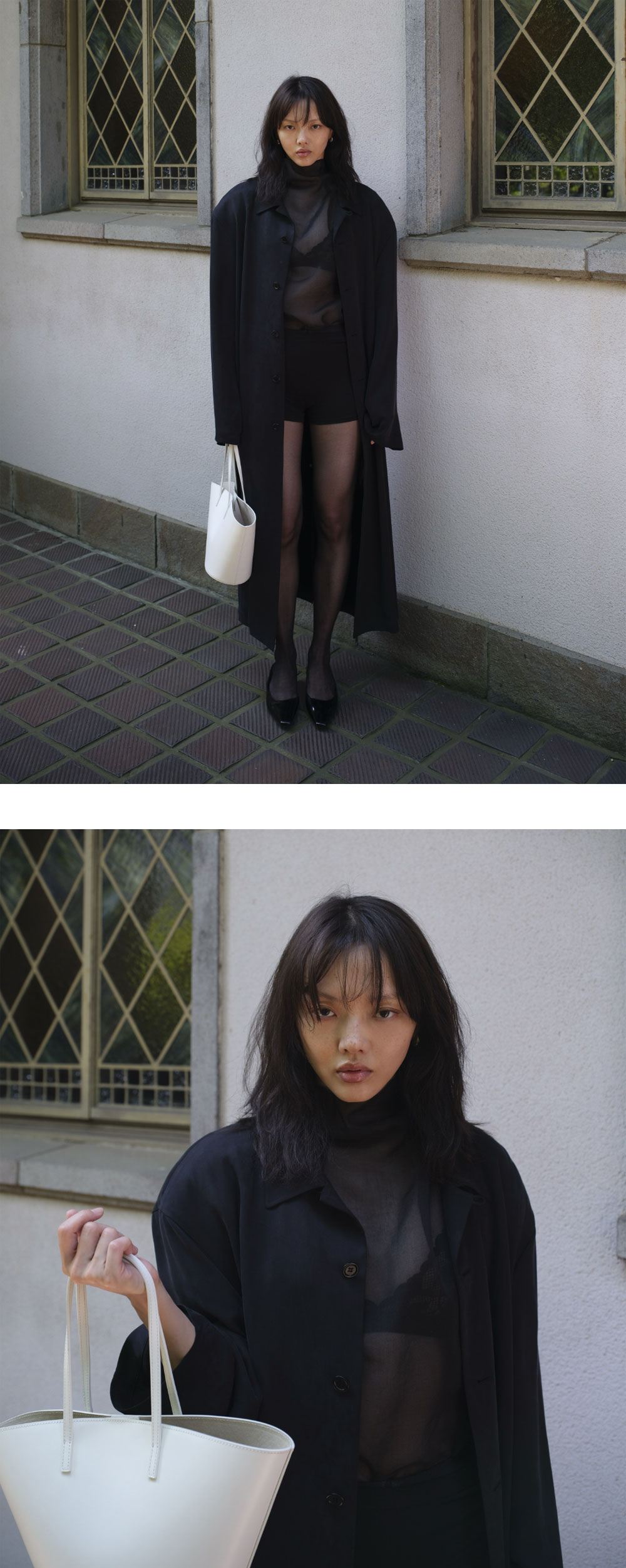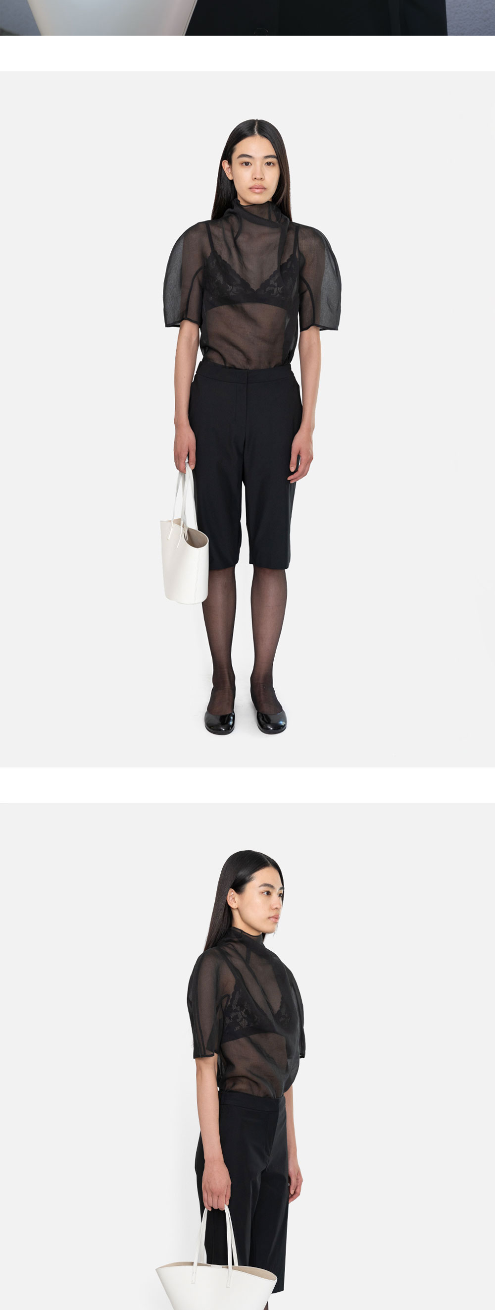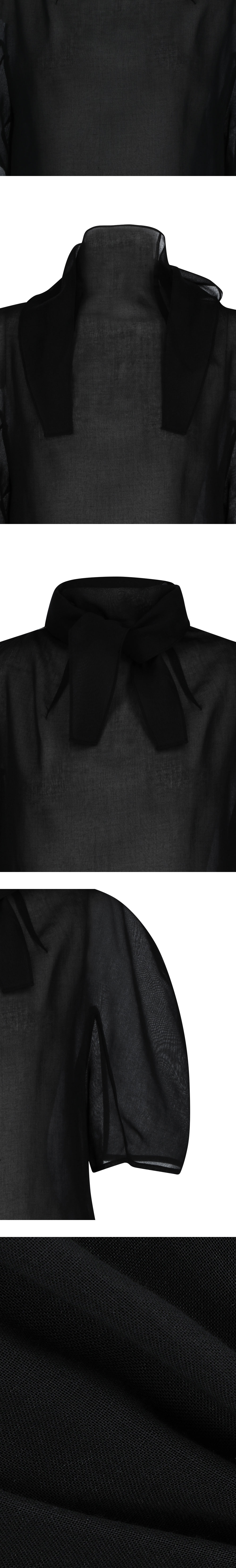 아모멘토 우먼 노티드 칼라 탑 블랙입니다. - 스탠드 칼라와 이어진 스카프 디테일로 다양한 넥 연출 가능 - 얇고 시어한 소재로 은은한 비침과 가벼운 착용감 - 볼륨감 있는 둥근 어깨 라인으로 세련된 실루엣 연출 - 우아하면서도 모던한 분위기의 포인트 아이템 *모델 스펙: 177cm 0 Size 착용