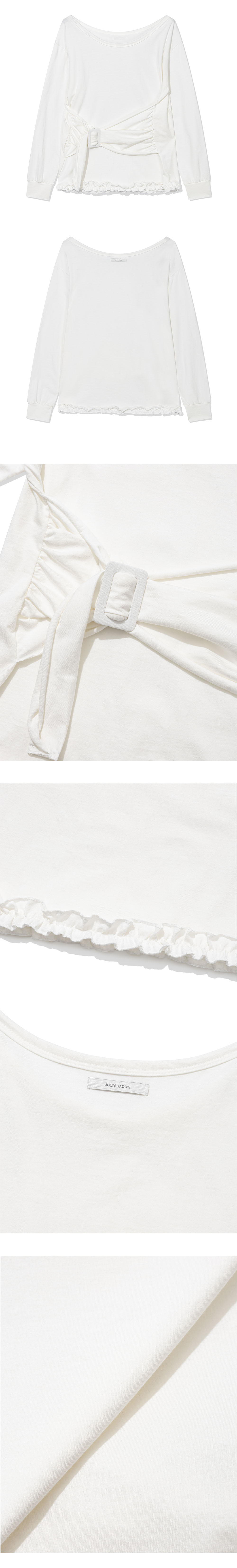 어글리쉐도우 버클 오프숄더 티셔츠 화이트