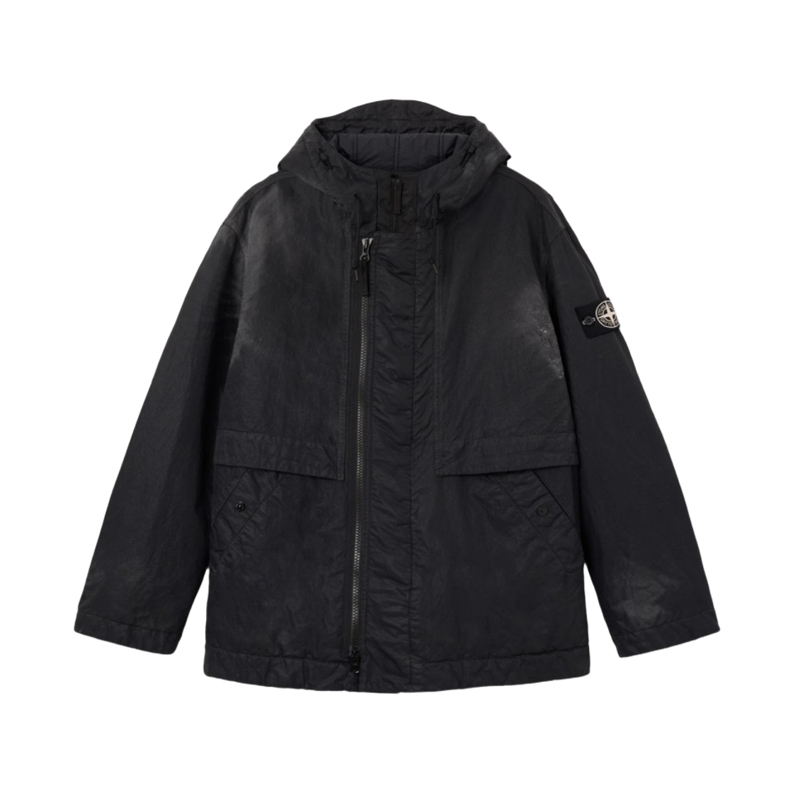Stone Island 4100072 Dense Nylon-TC Hand Sprayed Reflective Hoode Jacket with Ant Drop Black - 26SS