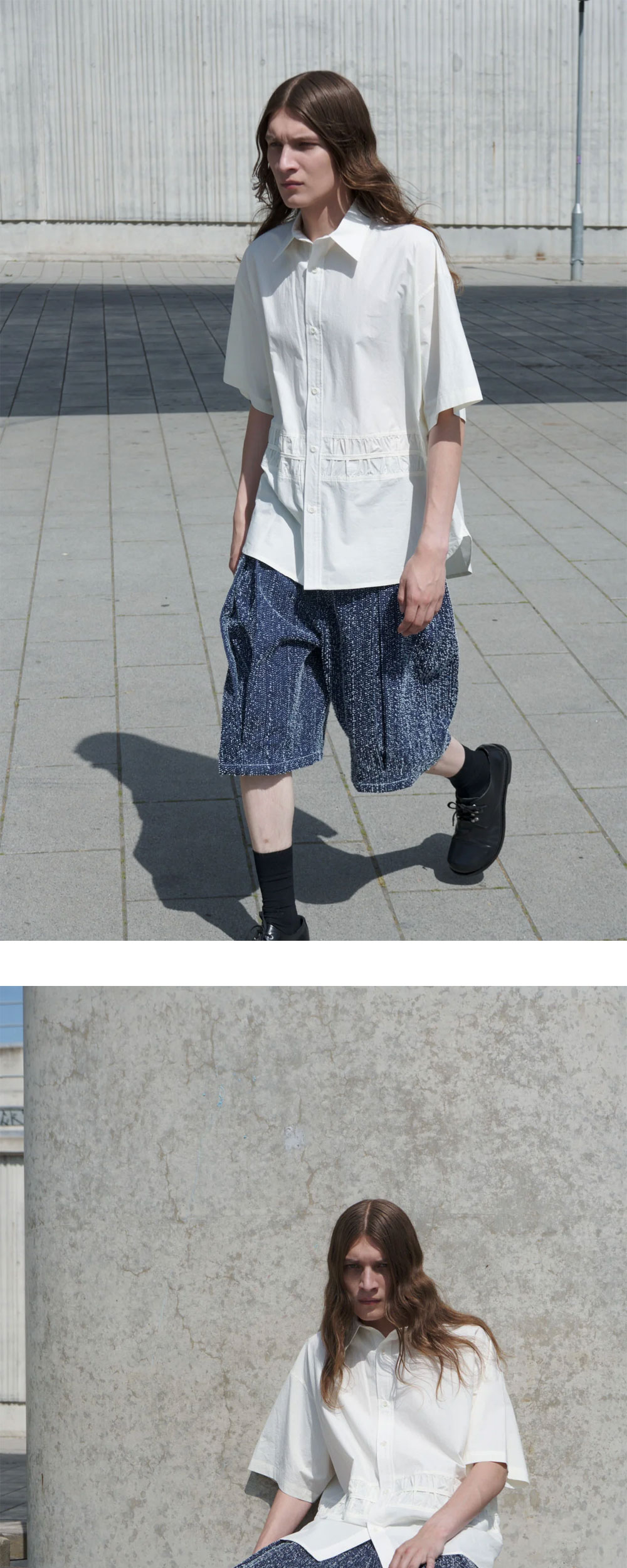 세이지 네이션 박스 플리츠 쇼츠 데님 인디고 스노우 넵 - 26SS