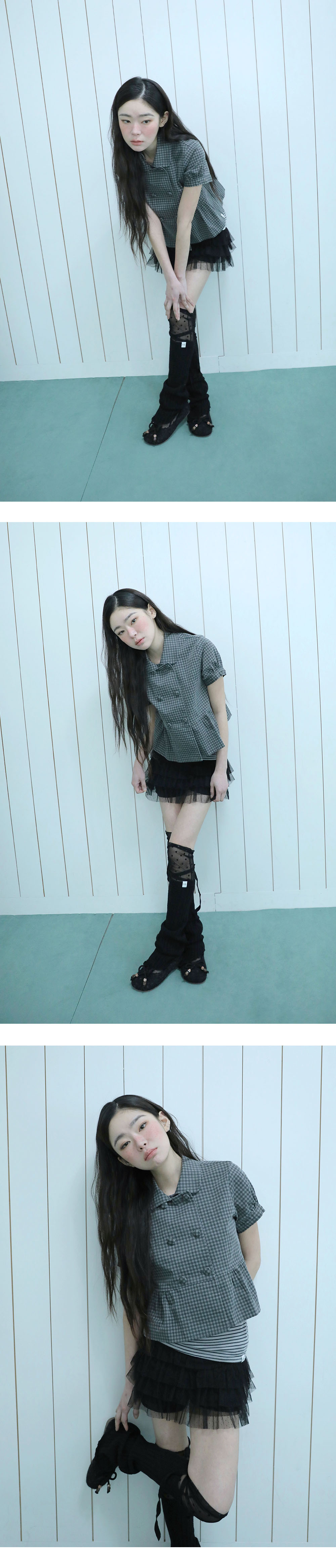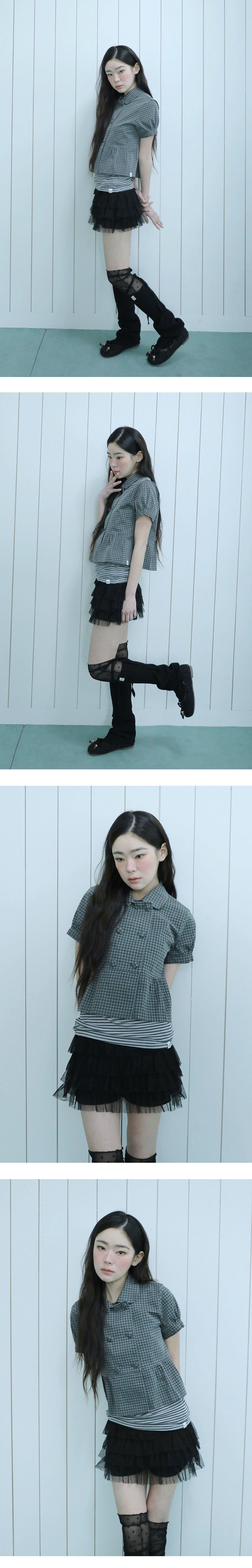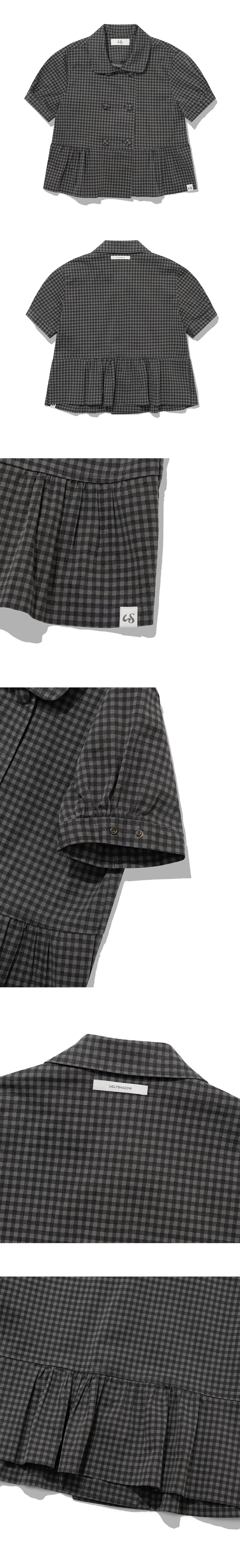 어글리쉐도우 더블 블라우스 자켓 체크 블랙