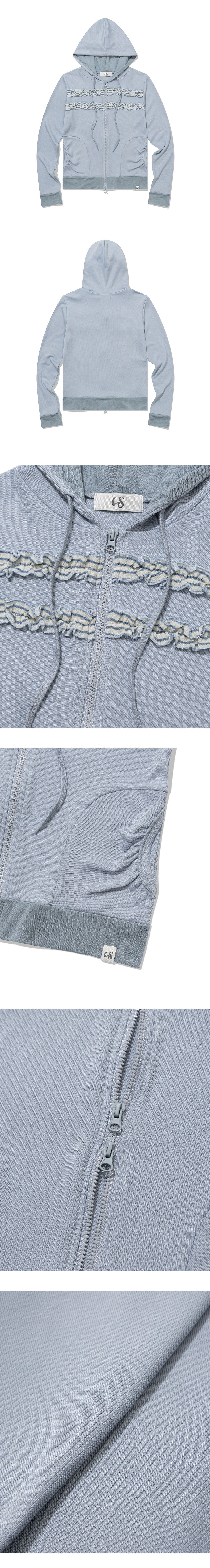 UGLYSHADOW Layered Shirring Hooded Zip-up Blue