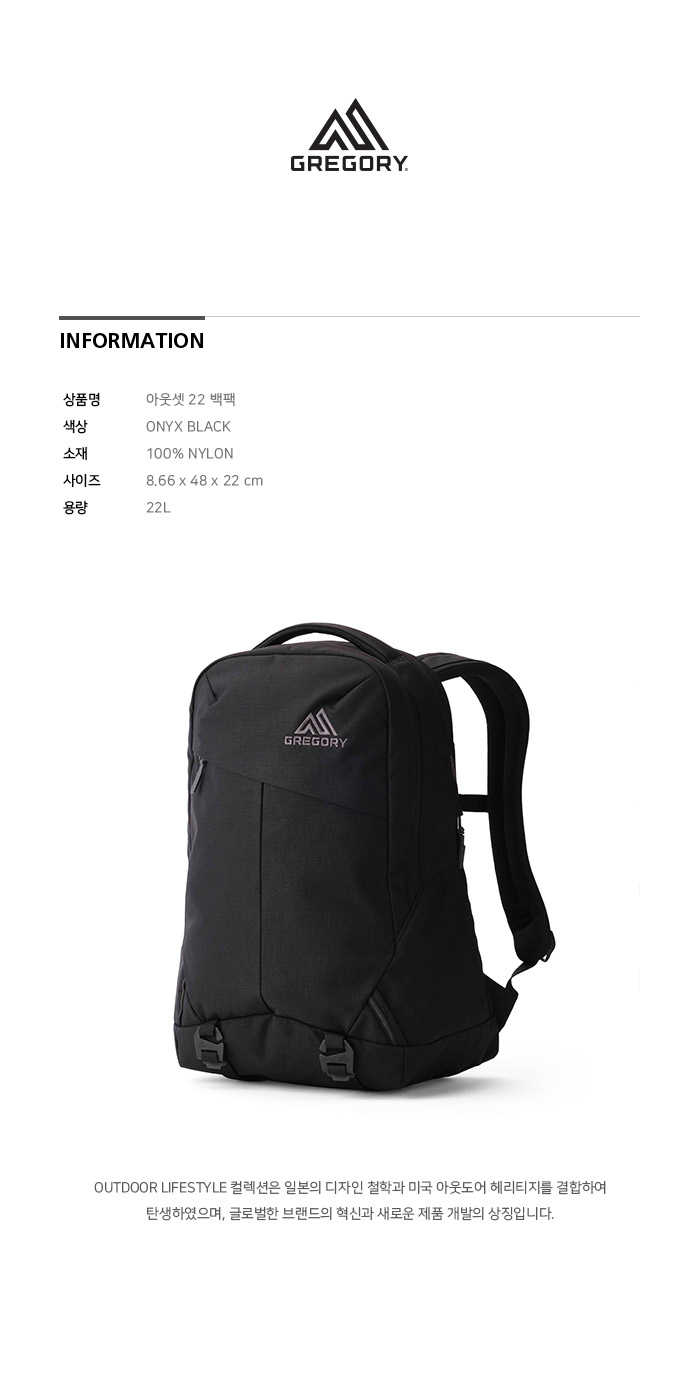 그레고리 아웃셋22 백팩 오닉스 블랙