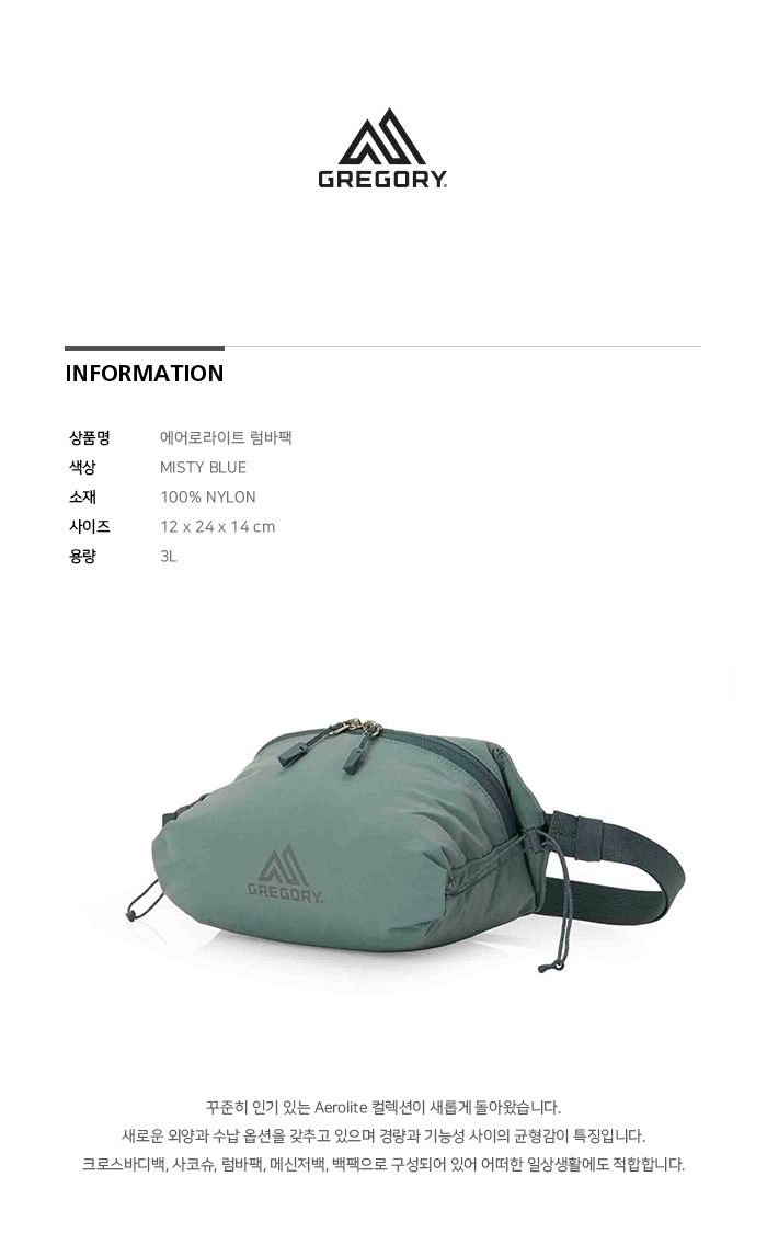 그레고리 에어로라이트 럼바팩 미스티 블루