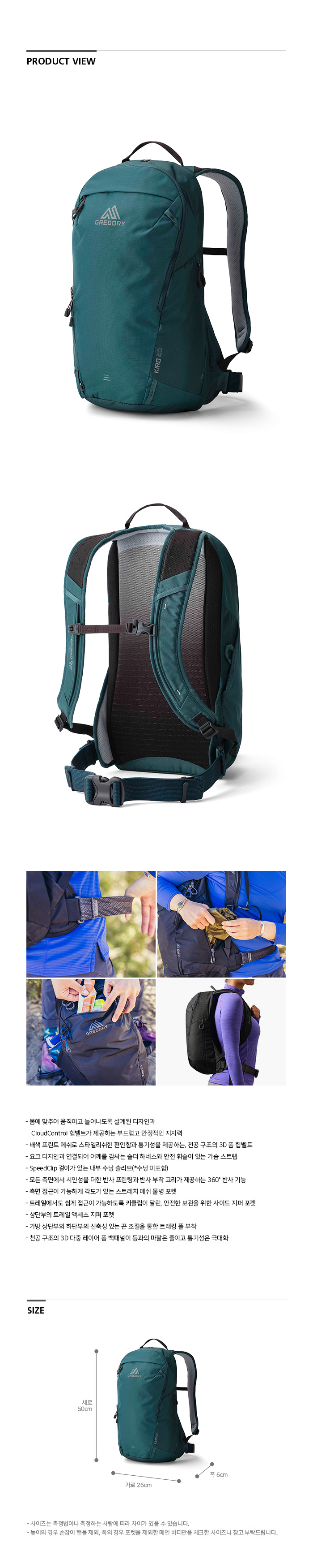 그레고리 키로20 미네랄 틸 가벼운등산배낭 당일산행가방