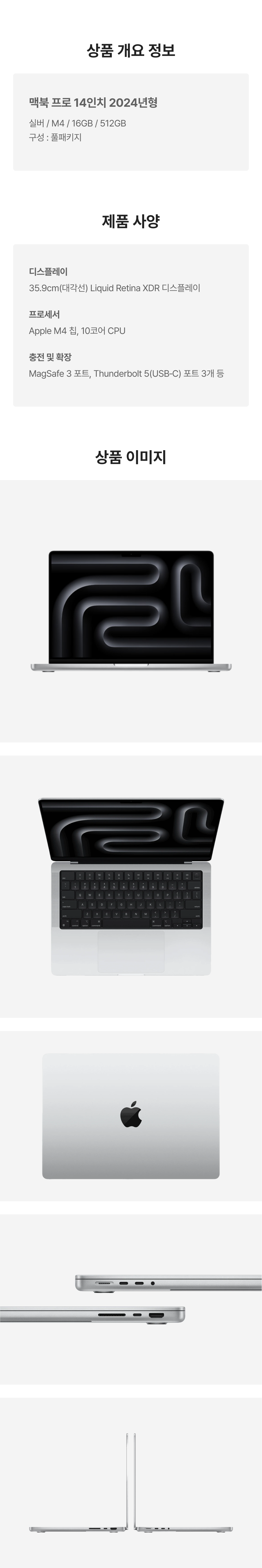 [S등급] 리퍼비시 2024 맥북 프로 14 M4 512기가 SSD 16기가 램 실버