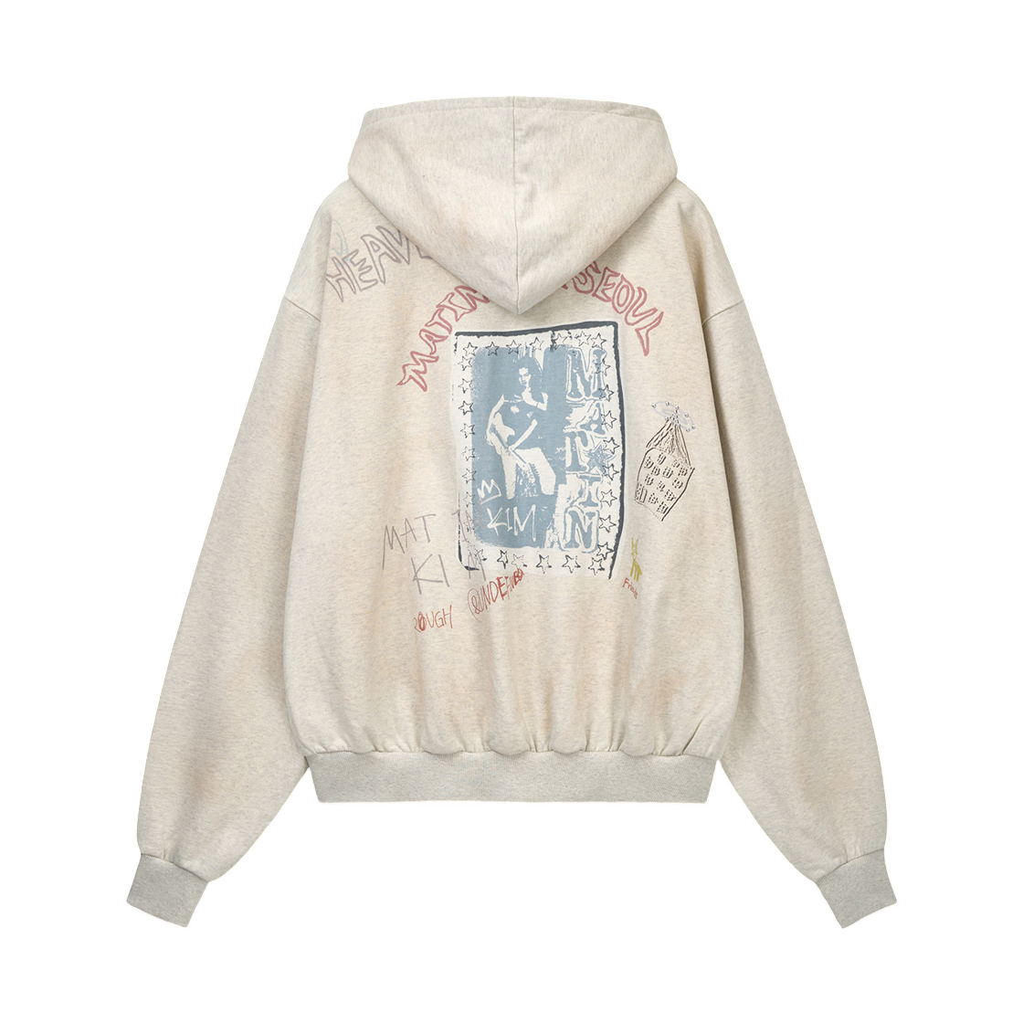 마뗑킴 빈티지 워시드 그래피티 후디 집업 베이지