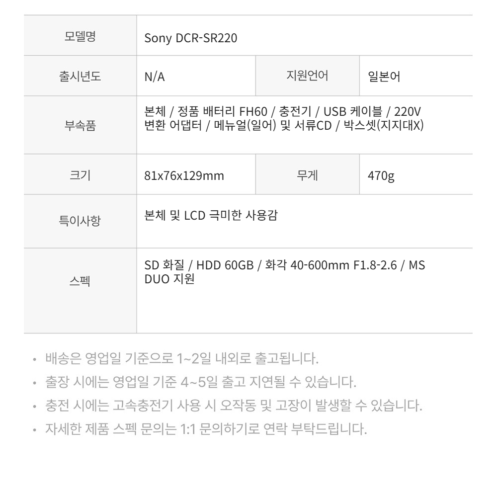 소니 DCR-SR220 실버