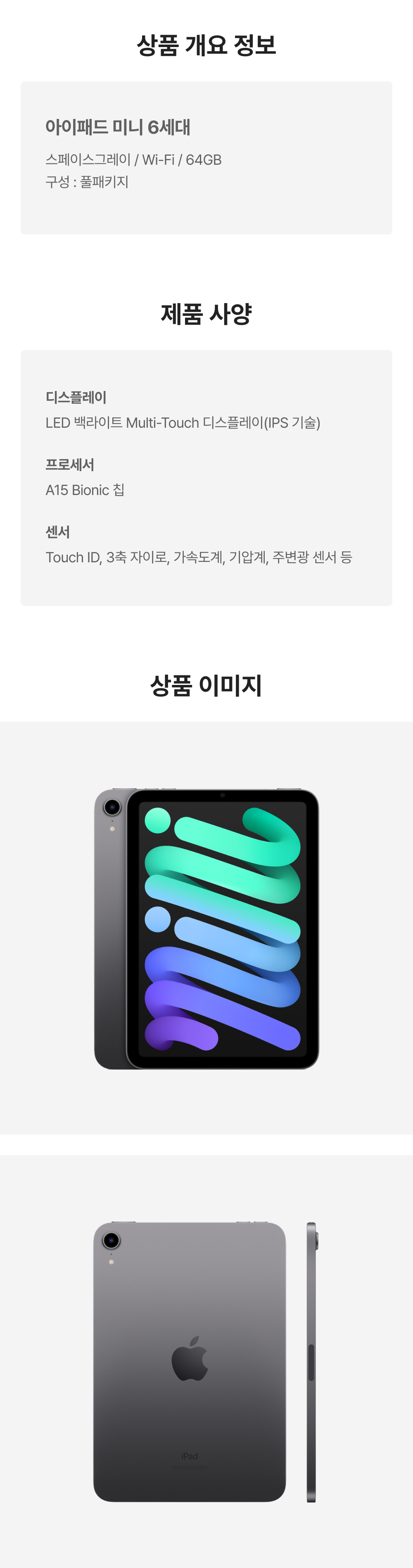 [S등급] 리퍼비시 아이패드 미니 6세대 wifi A15 Bionic 64기가 스페이스그레이