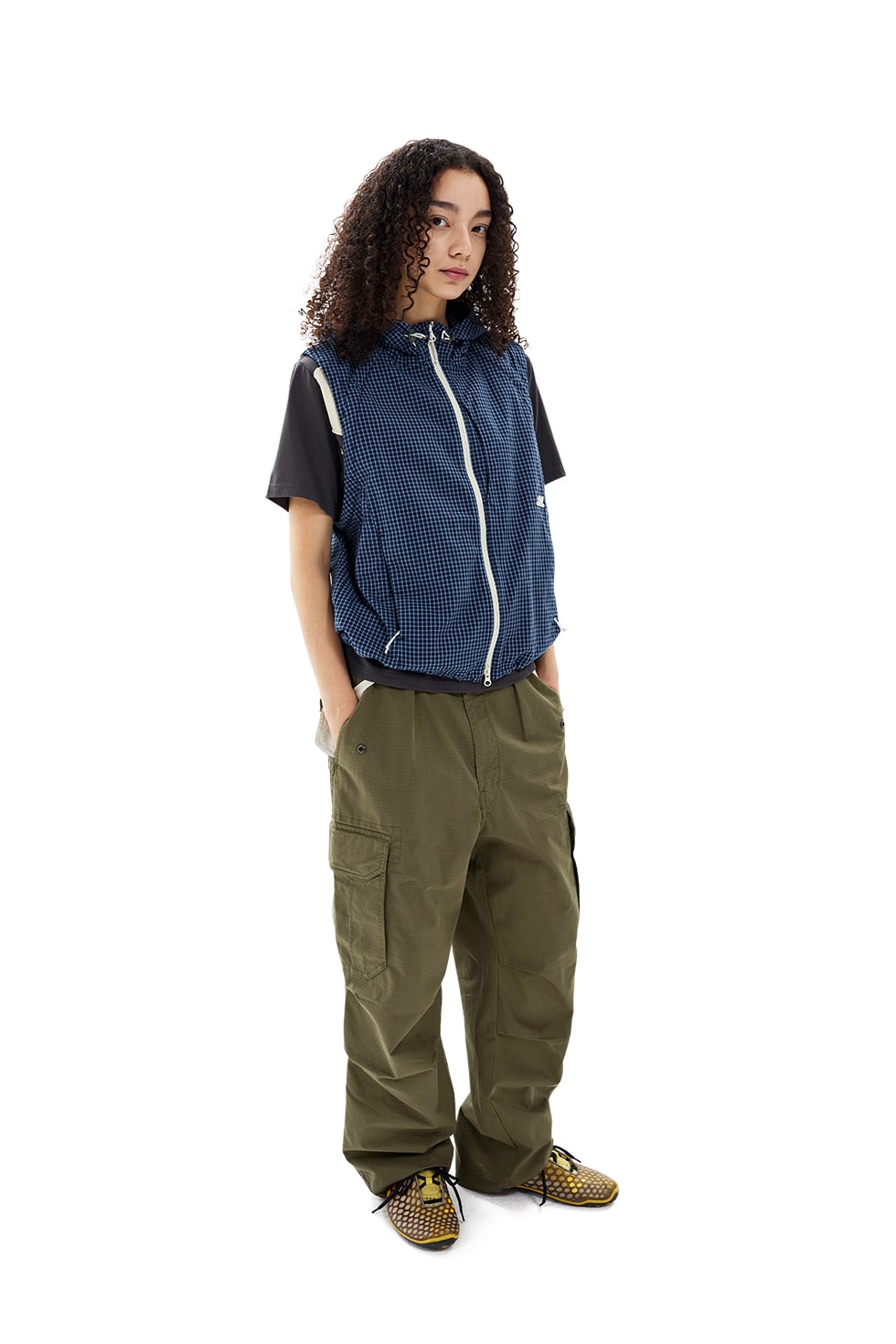 · 투웨이 자켓 · 코튼 체크 원단 사용 · 가먼트 바이오 워싱을 통해 형태 안정성과 부드러운 터치감 구현 · 탈부착 가능한 소매 · 가슴 이중 포켓 디테일 · 후드, 밑단 스트링 조절 가능 · 소맷단 벨크로로 조절 가능 · 전면, 포켓에 YKK 지퍼 사용 · 데이브레이크 심볼 고무라벨 Cotton 100% Made in Vietnam Male - Large/187.5cm,Female - Small/171cm