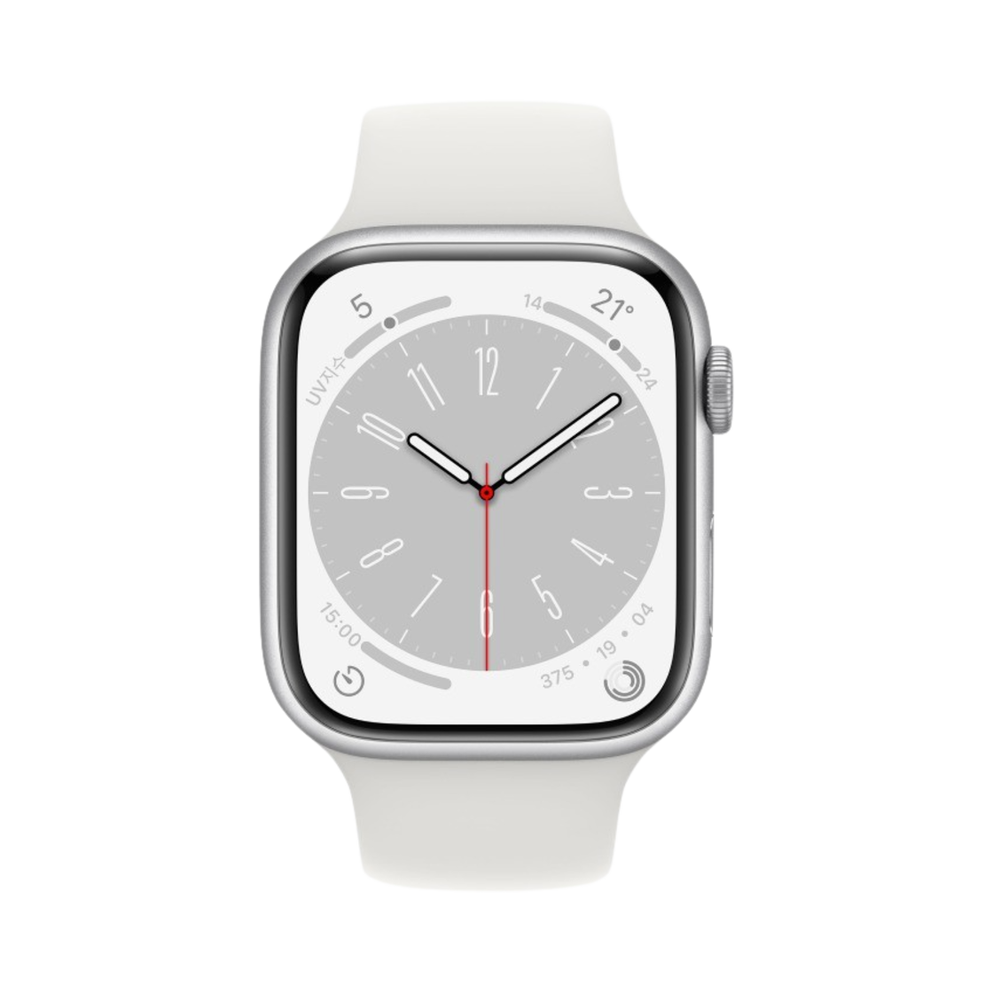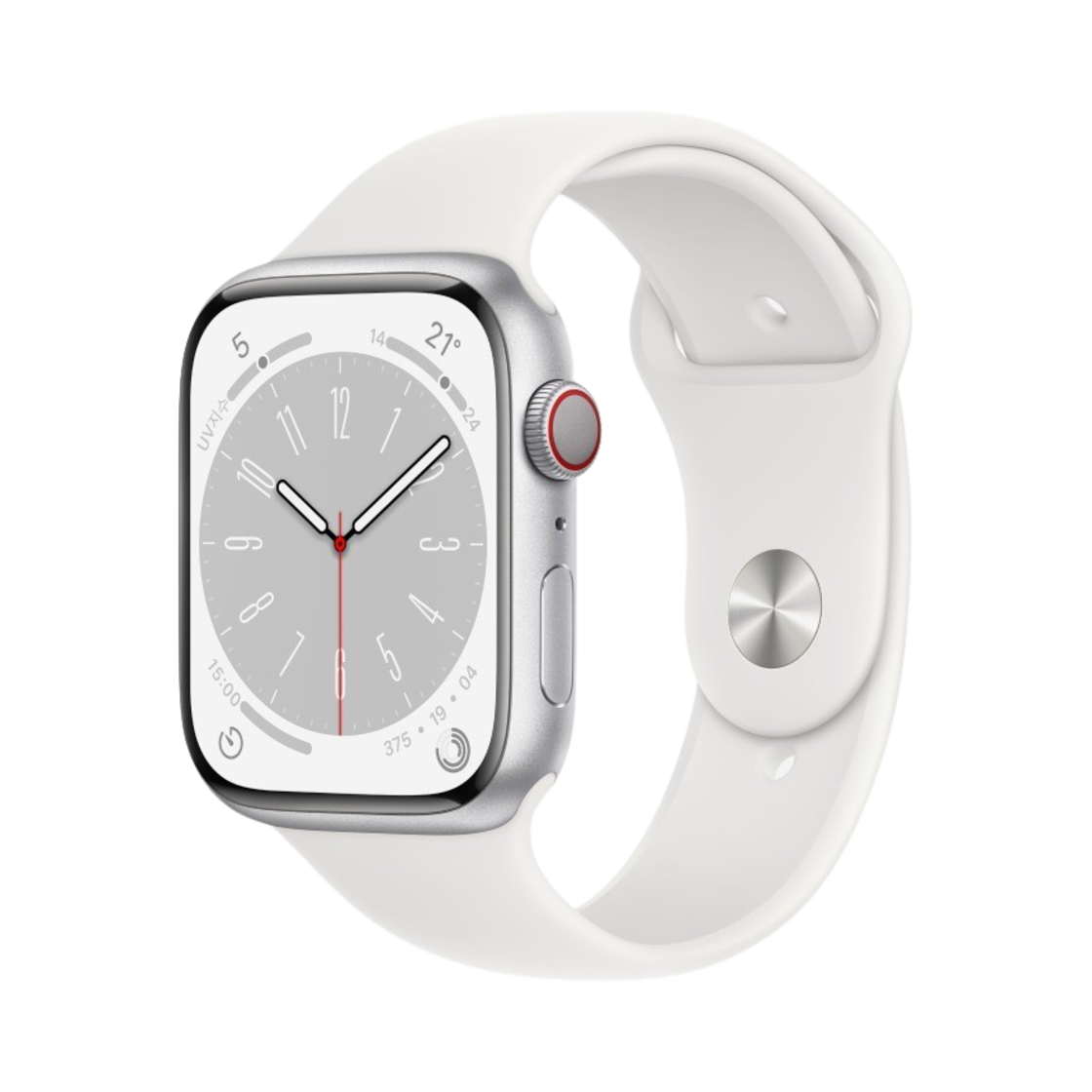 애플 워치 8 45mm 셀룰러 실버 알루미늄 케이스 스포츠 밴드 화이트 (국내 정식 발매 제품)