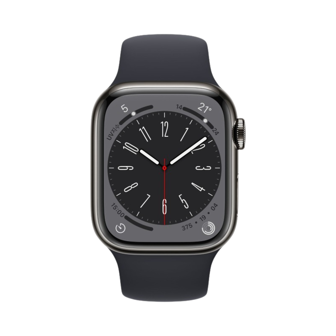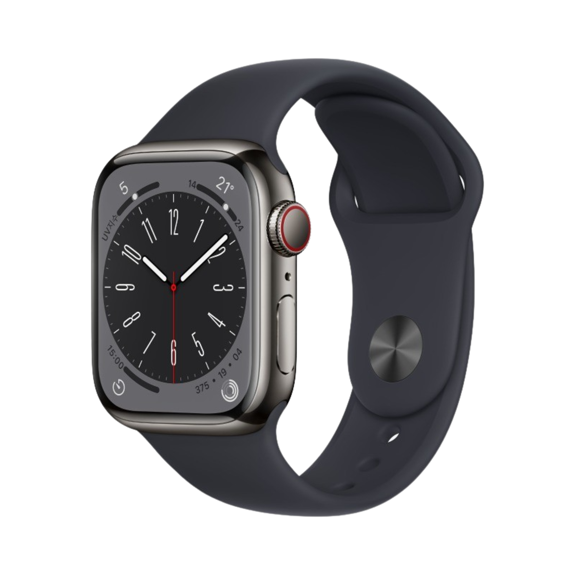 애플 워치 8 41mm 셀룰러 그래파이트 스테인리스 스틸 케이스 스포츠 밴드 미드나이트 (국내 정식 발매 제품)