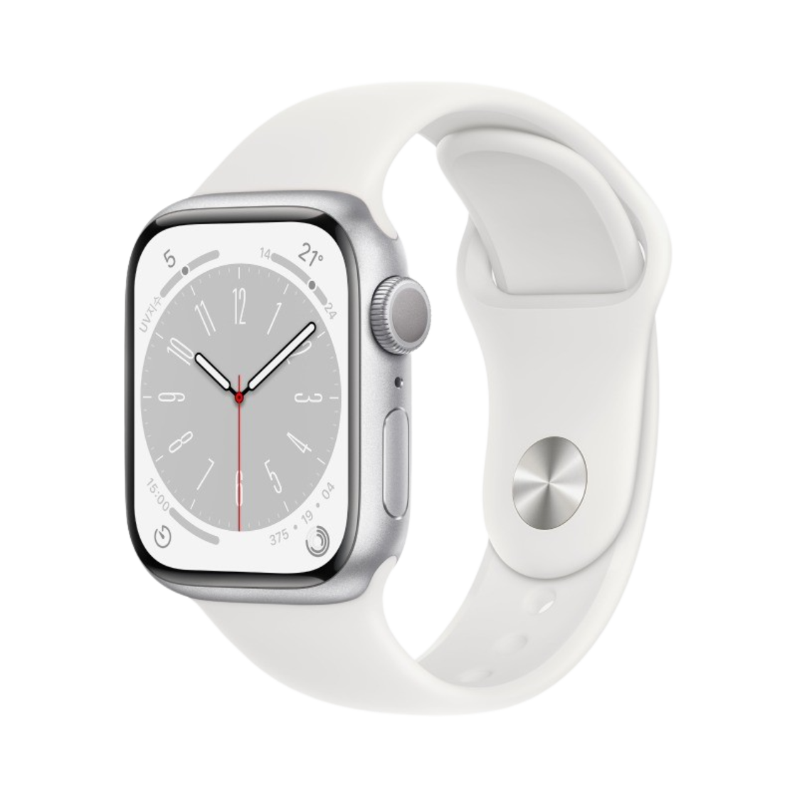 애플 워치 8 41mm GPS 실버 알루미늄 케이스 스포츠 밴드 화이트 (국내 정식 발매 제품)