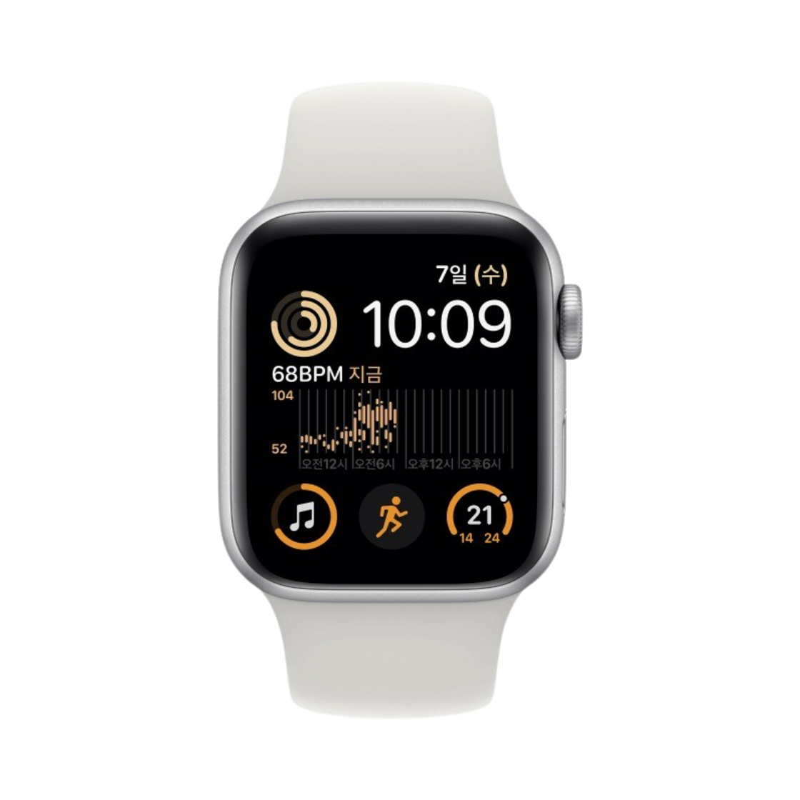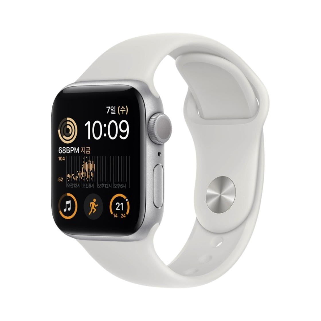 애플 워치 SE 40mm GPS 실버 알루미늄 케이스 스포츠 밴드 화이트 (국내 정식 발매 제품)