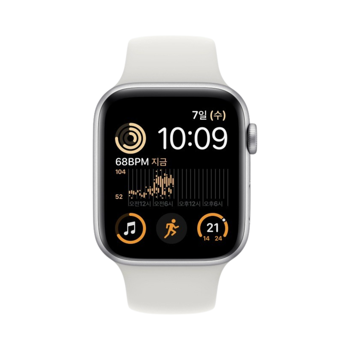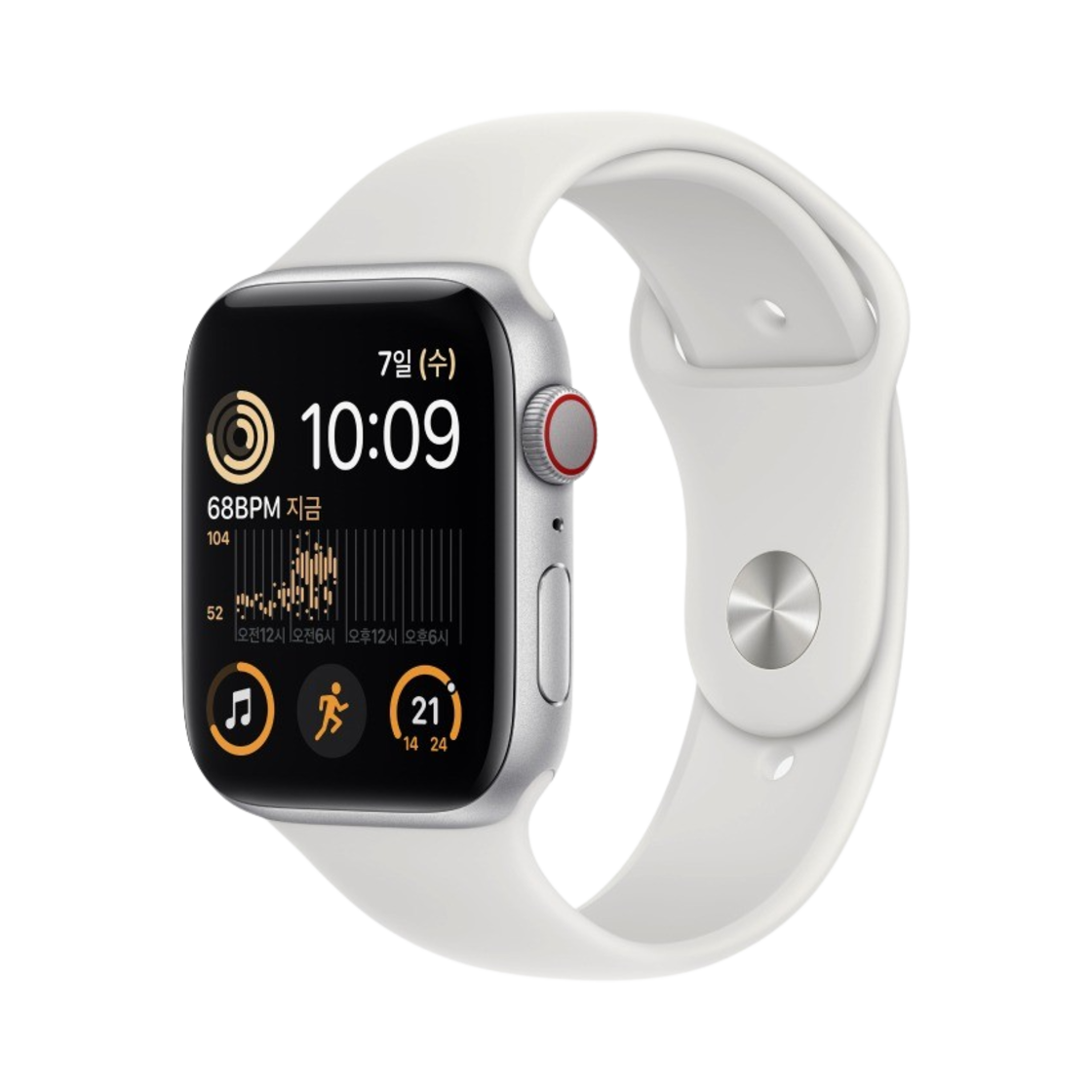 애플 워치 SE 44mm 셀룰러 실버 알루미늄 케이스 스포츠 밴드 화이트 (국내 정식 발매 제품)