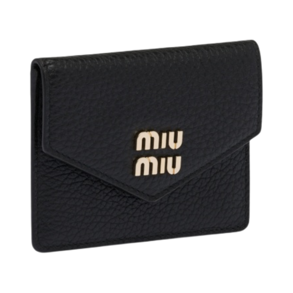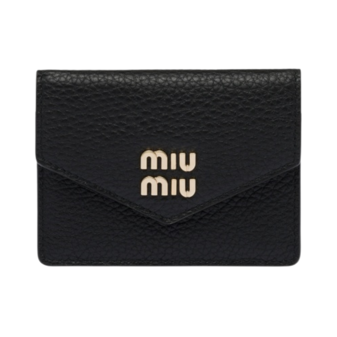 Miu Miu Metal Lettering Logo Leather Card Holder Black