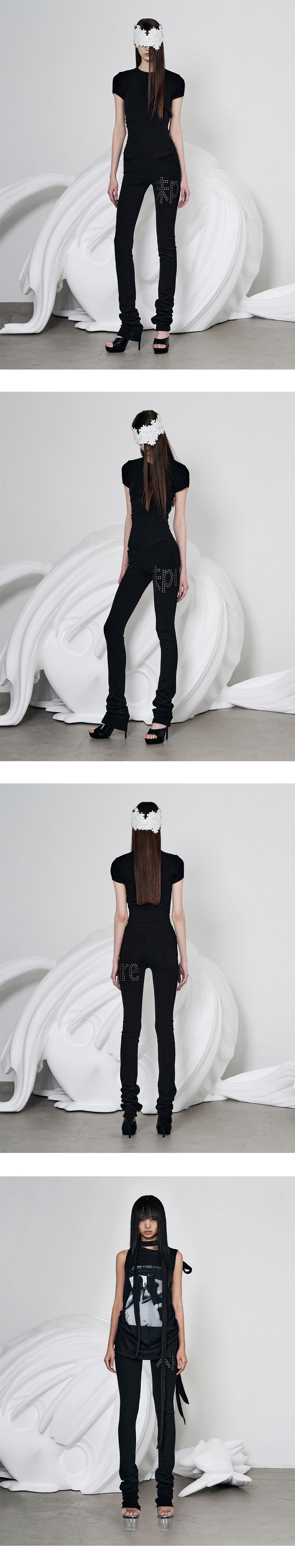 Model is 174cm wears size 1 슬림 핏 레깅스 허리 밴드 내장 밑단 스택드(주름) 디테일 앞 사이드 주머니 내장 펀칭 아일렛 자수 디테일 신축성 있는 원단으로 편안한 착용감 Size(Length/Waist/Hip/Thigh/Crotch) 1 : 123cm/27.5cm/36cm/25cm/20cm 2 : 124cm/30cm/38.5cm/26cm/21cm 3 : 125cm/32.5cm/40cm/27cm/23cm Rayon 47% Polyester 47% Spandex 6%