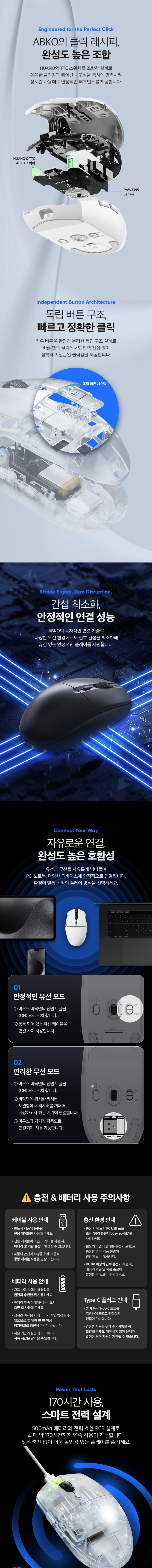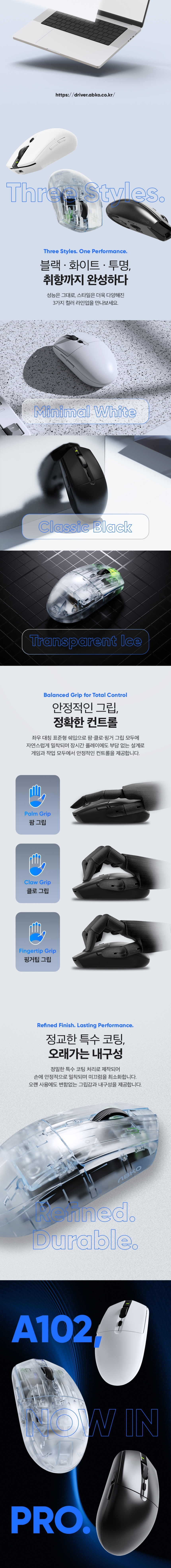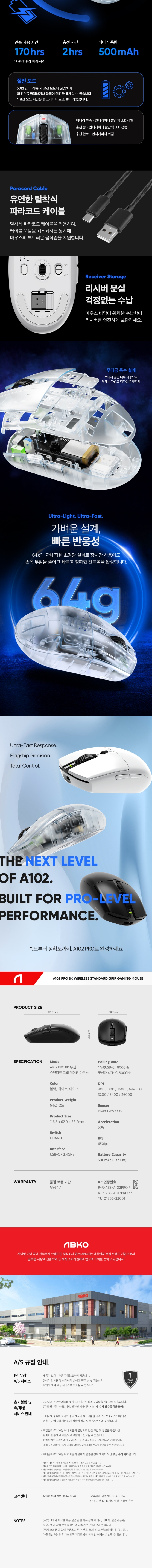 앱코 A102 PRO 8K 무선 스탠다드 그립 게이밍 마우스