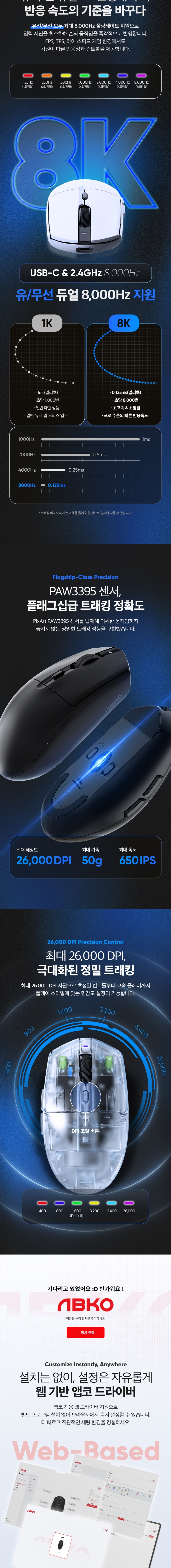 ABKO A102 PRO 8K Wireless Standard Grip Gaming Mouse