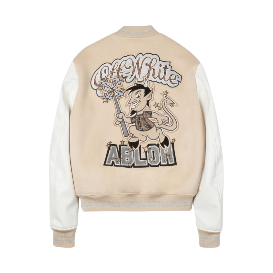 Off-White C/O AC Milan Varsity Jacket Black Off-White Light Beige