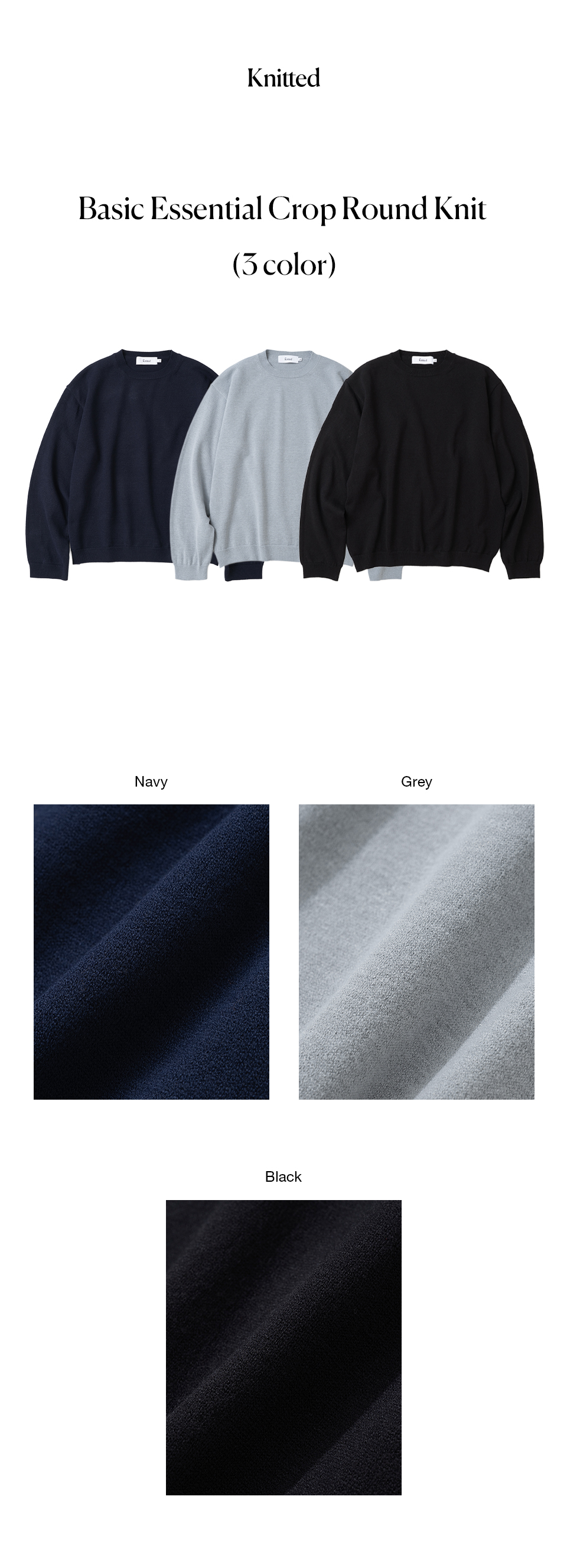 니티드 베이직 에센셜 크롭 라운드 니트 멜란지 그레이