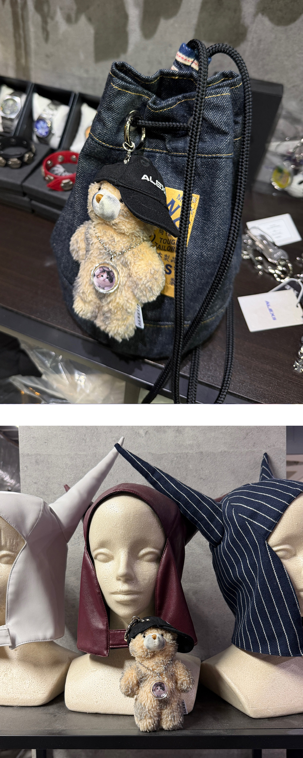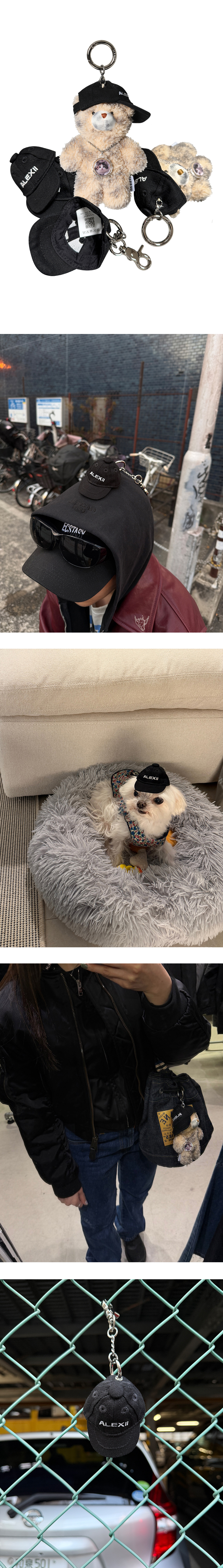 [ALEXII] LOGO CAP BEAR ALEXII 로고 자수가 들어간 모자를 쓴 곰돌이 키링입니다. 탈부착이 가능한 고양이 사진 목걸이를 착용해 귀여움을 더했습니다. 머리 위에는 모자를 벗길 수 있도록 오픈형 고리를 연결해 두었습니다. 동봉된 고리를 연결하면 모자 부분만 분리해 키링으로 활용하실 수 있습니다. - CAP : POLYESTER 100% - BEAR : POLYESTER 100% - SILVER-TONE METAL HOOK CLOSURE - MADE IN CHINA (base doll body,cap) - HAND-CRAFTED & CUSTOMIZED IN KOREA (후가공/커스텀: 베이스가 되는 인형 몸판 제작 외 모든 공정은 한국에서 핸드메이드로 제작됩니다.) - HAND MADE 더티가공 제품으로 개체 차이가 있으며 교환, 환불 사유가 되지 않습니다. # 증정용 카라비너의 색상과 형태는 랜덤으로 발송됩니다