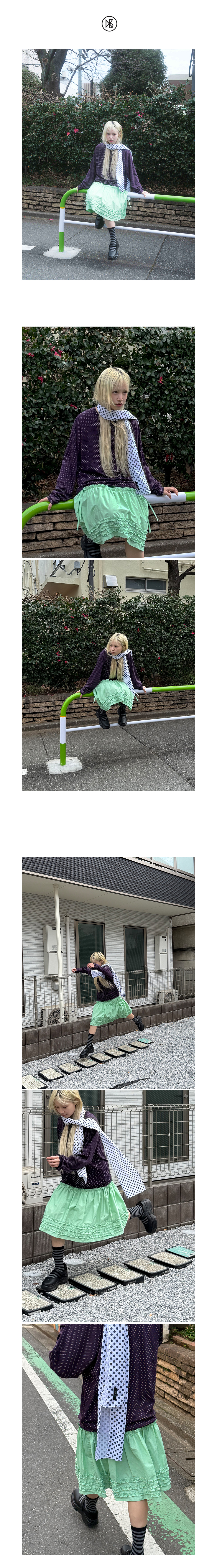 Polka Dot Long Scarf FABRIC Cotton 65%, Rayon 35% DETAIL -도트 패턴의 롱스카프 SIZE -원사이즈 높이 26.5-27cm, 너비 176cm *같은 제품이라도 재는 위치에 따라 오차가 있을 수 있습니다* *해상도에 따라 화면에서 보이는 것과 색감차이가 날 수 있습니다. * WASHING INSTRUCTIONS -건조기금지 -드라이크리닝 MODEL Dudu, Height 159cm